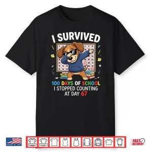 100 Days Of School 67 Humor Dabbing Dog Students Teachers Shirt