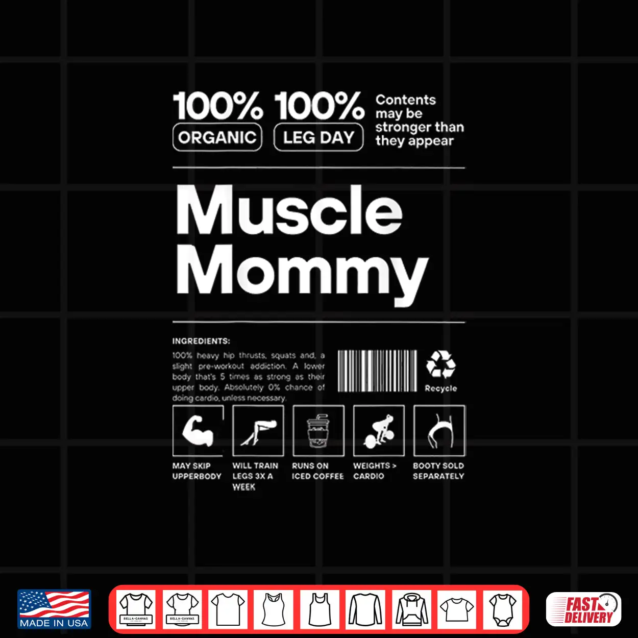 100 Muscle Mommy Bodybuilding Gym Fit Design On Back Shirt