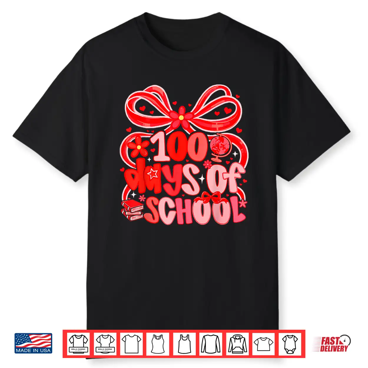 100Th Day Of School 100 Days Girl Teacher Coquette Valentine Shirt
