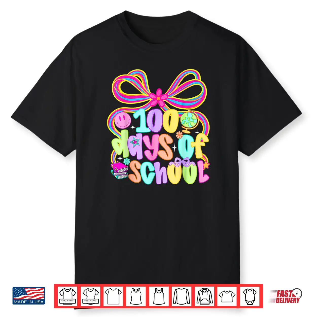 100th Day of School 100 Days Teacher Coquette Bow Girl Women Shirt