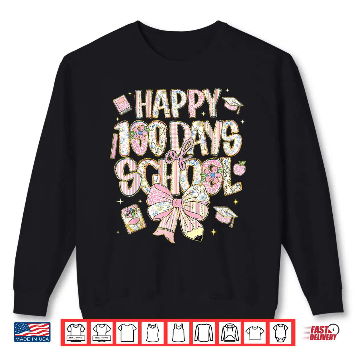 100Th Day Of School Preppy 100 Days Teacher Kid Coquette Bow Shirt