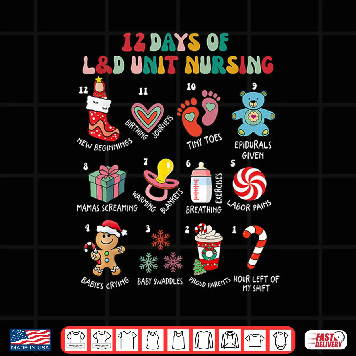 12 Days Of L&D Unit Nursing Labor & Delivery Nurse Christmas Shirt