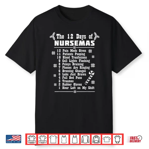 12 Days Of Nursemas Funny Christmas Nurses Er Cna Gift Nurse Shirt