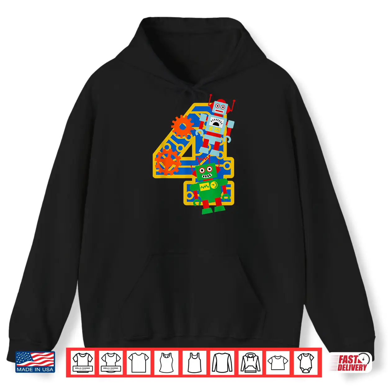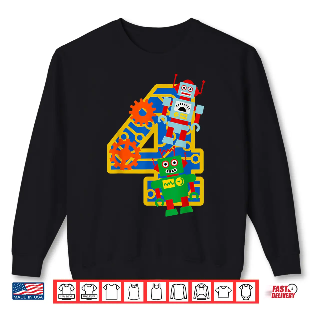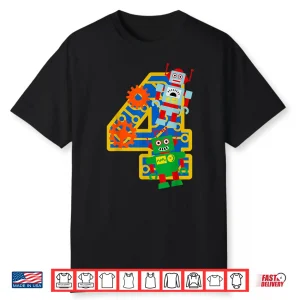 4Th Birthday Boy 4 Year Old Little Robot Robotics Engineer Shirt