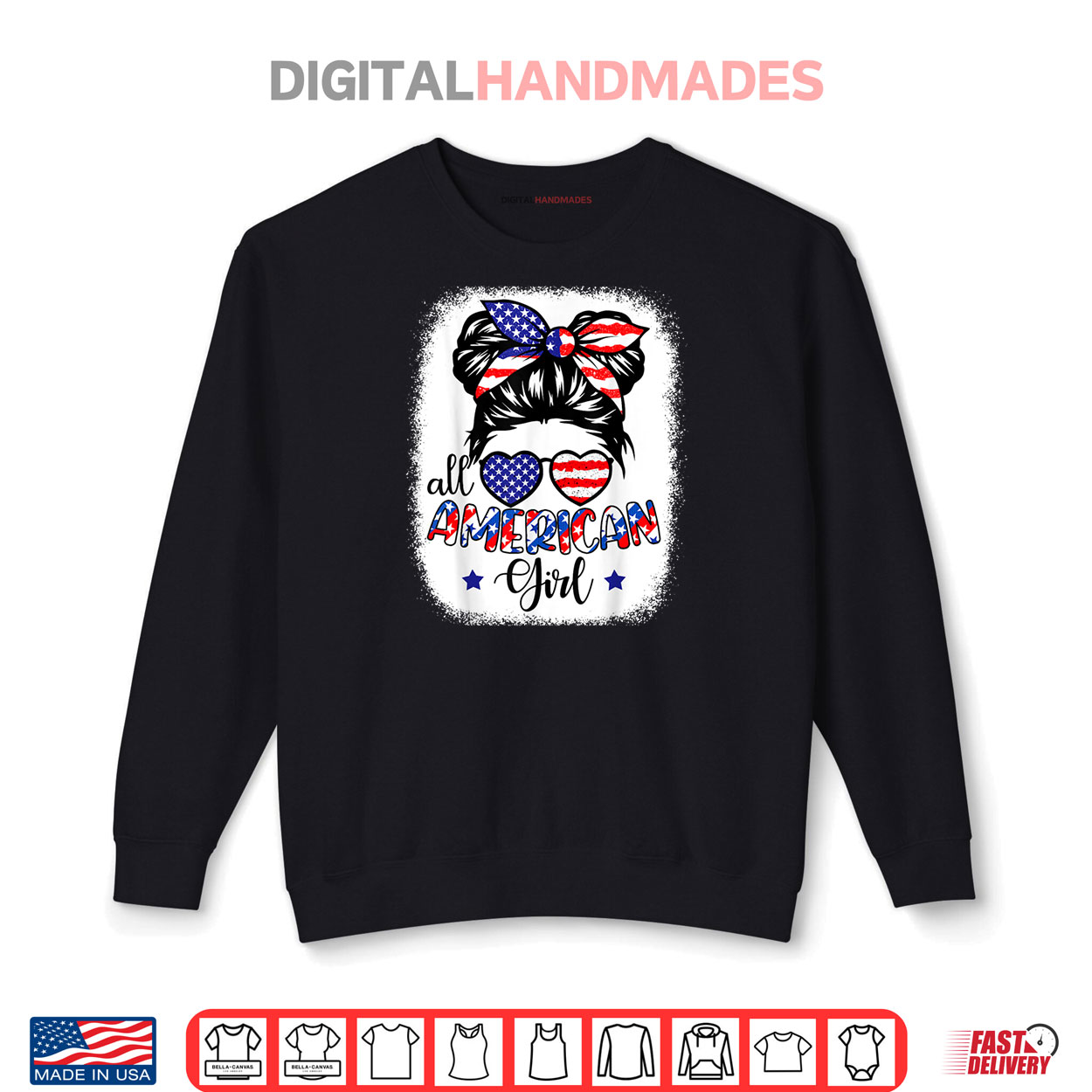 4th of July All American Girl Messy Bun US Flag Shirt, Messy Bun Hair July 4th Shirt, All American Girl Patriot Shirt, US Flag Summer Holiday Shirt, Patriotic Women’s Style Shirt, Independence Day Girl Power Shirt, Red White Blue Messy Bun Shirt, Cute Fourth Of July Outfit Shirt, American Girl Pride Shirt, Casual Holiday Fashion Shirt