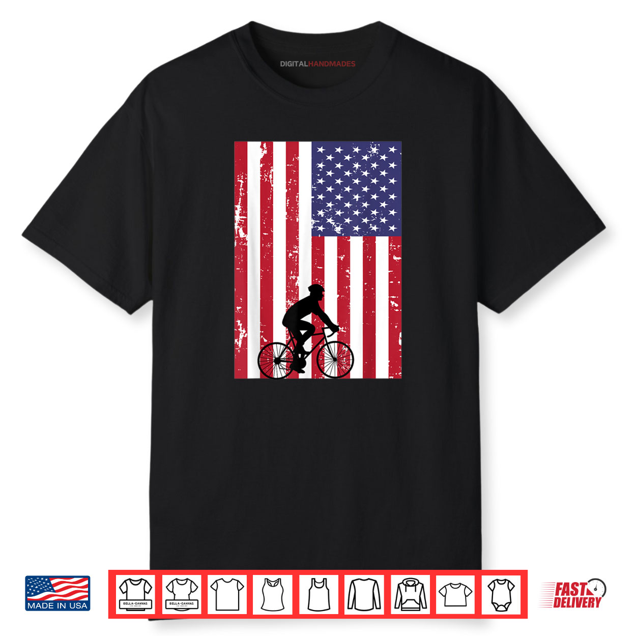 4th Of July Cycling Cyclist Bicycle Vintage USA Flag Shirt