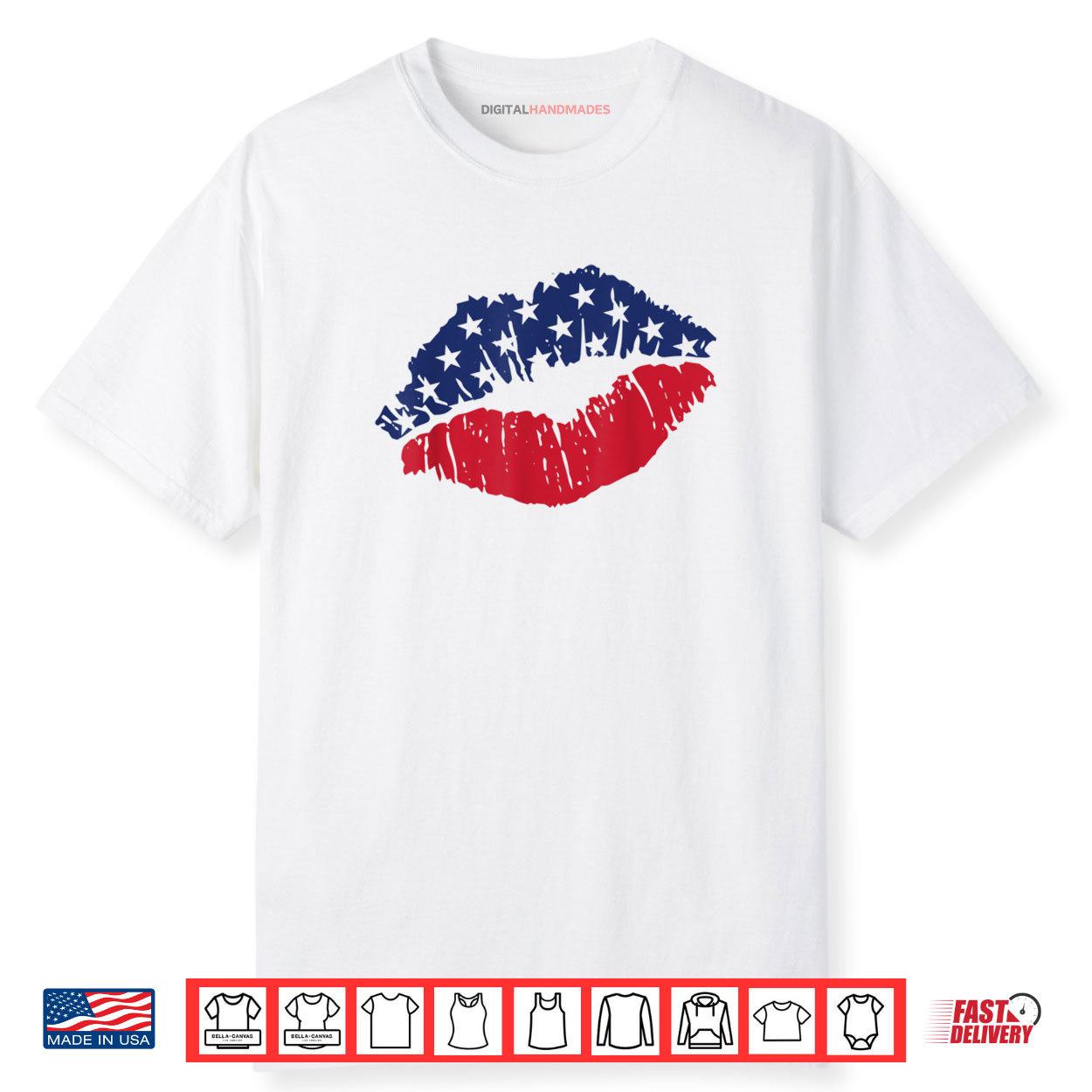 4th of July USA Flag Kiss Lips Patriotic Gift Shirt, USA Flag Kiss Lips July 4th Tee Shirt, Patriotic Gift For Her Independence Day Shirt, American Flag Lips Graphic Apparel Shirt, Fourth Of July Kiss Me I’m American Shirt, Red White And Blue Makeup Style Shirt, Stars And Stripes And Kisses Fun Shirt, All American Girl Beauty And Pride Shirt, Sexy And Patriotic Holiday Look Shirt, Summer Celebration For Women Shirt