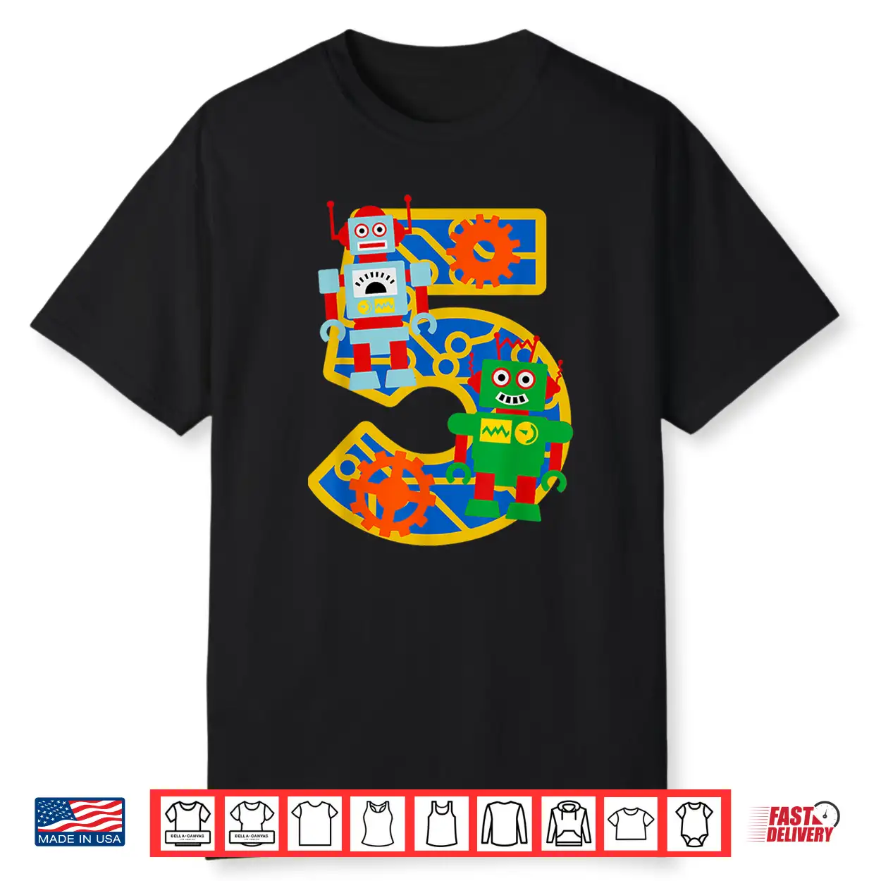 5Th Birthday Boy 5 Year Old Little Robot Robotics Engineer Shirt