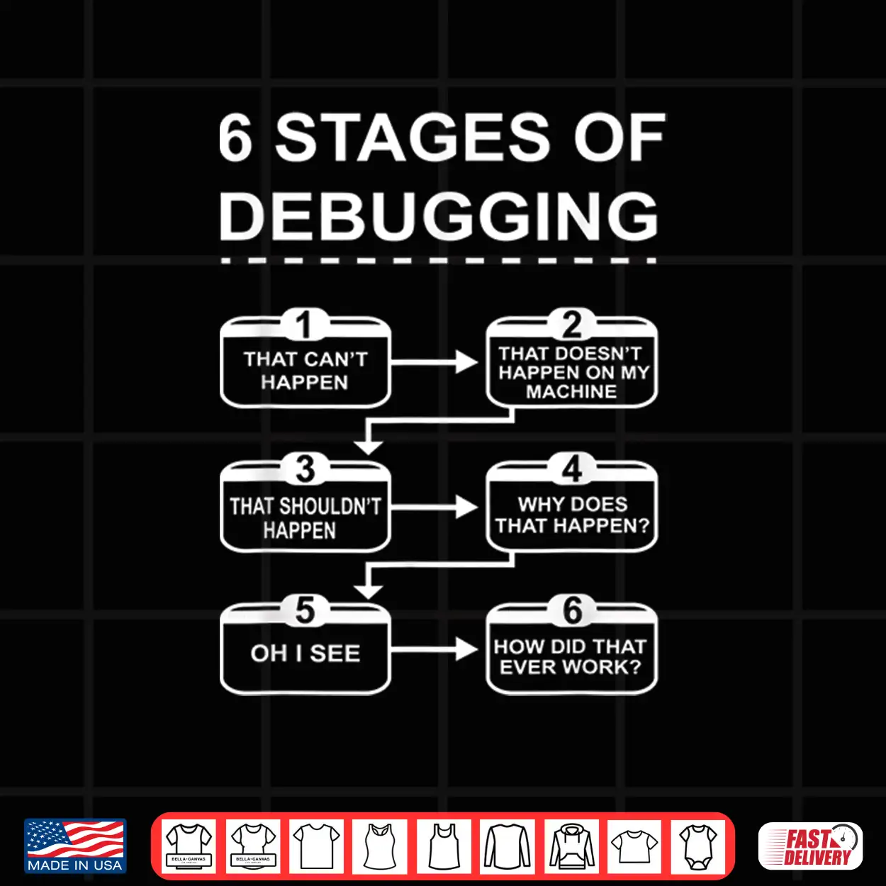 6 Stages Of Debugging Design Programming Computer Science Shirt