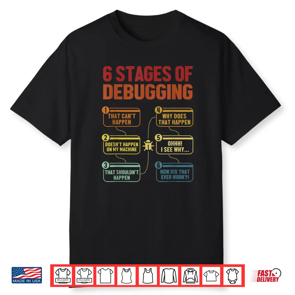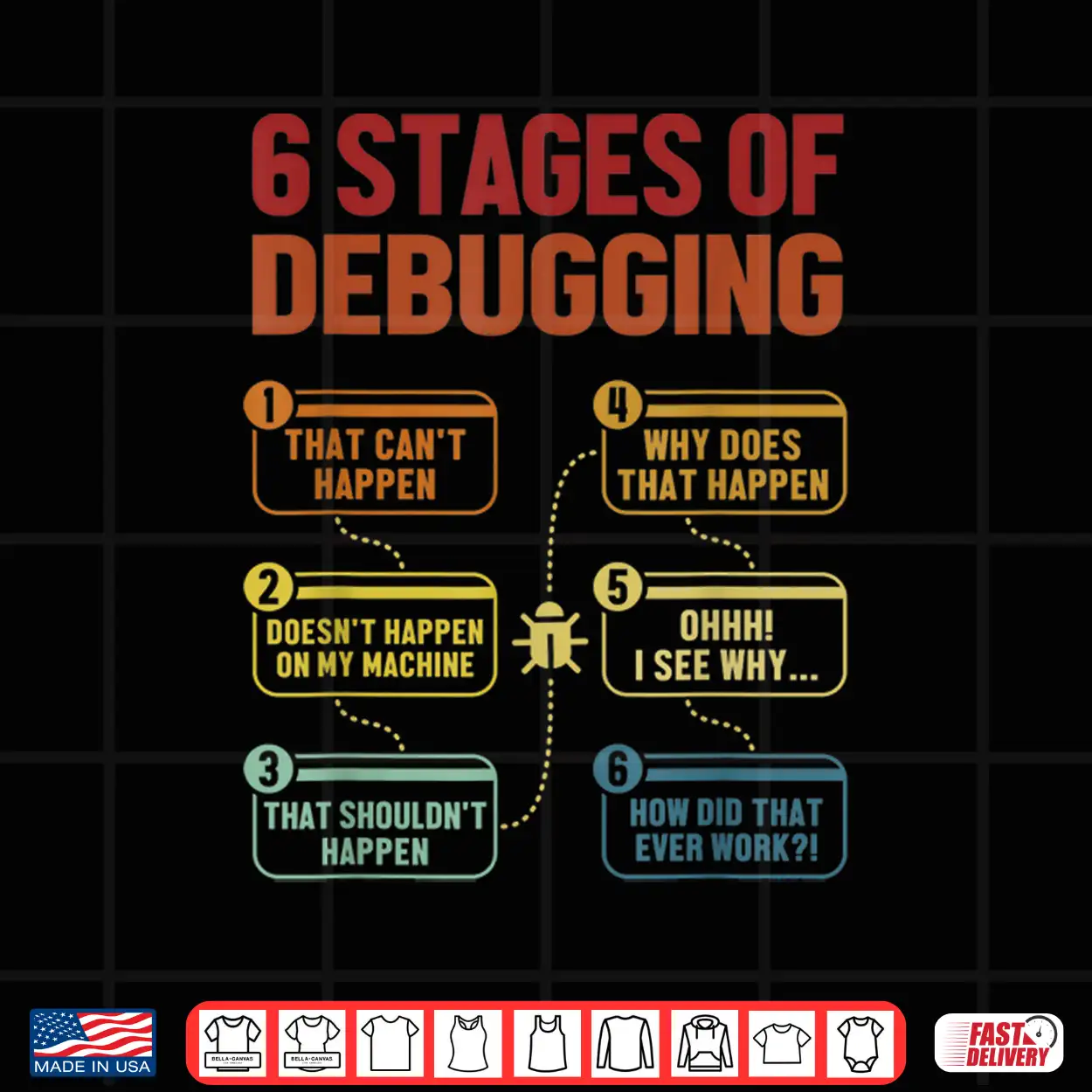 6 Stages Of Debugging Full Stack Coder Software Developer Shirt