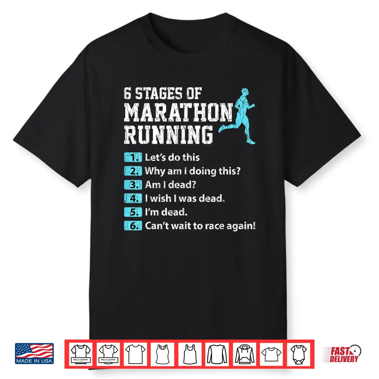 6 Stages Of Marathon Running Funny Runner Graphic Shirt