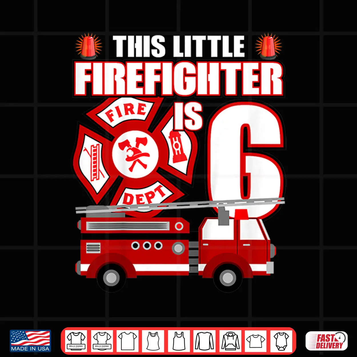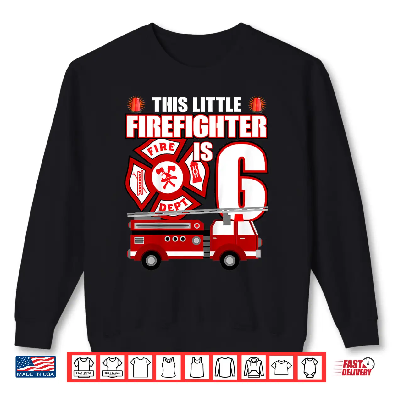 6 Year Old Firefighter Birthday Party Fire Truck 6Th Gift Shirt