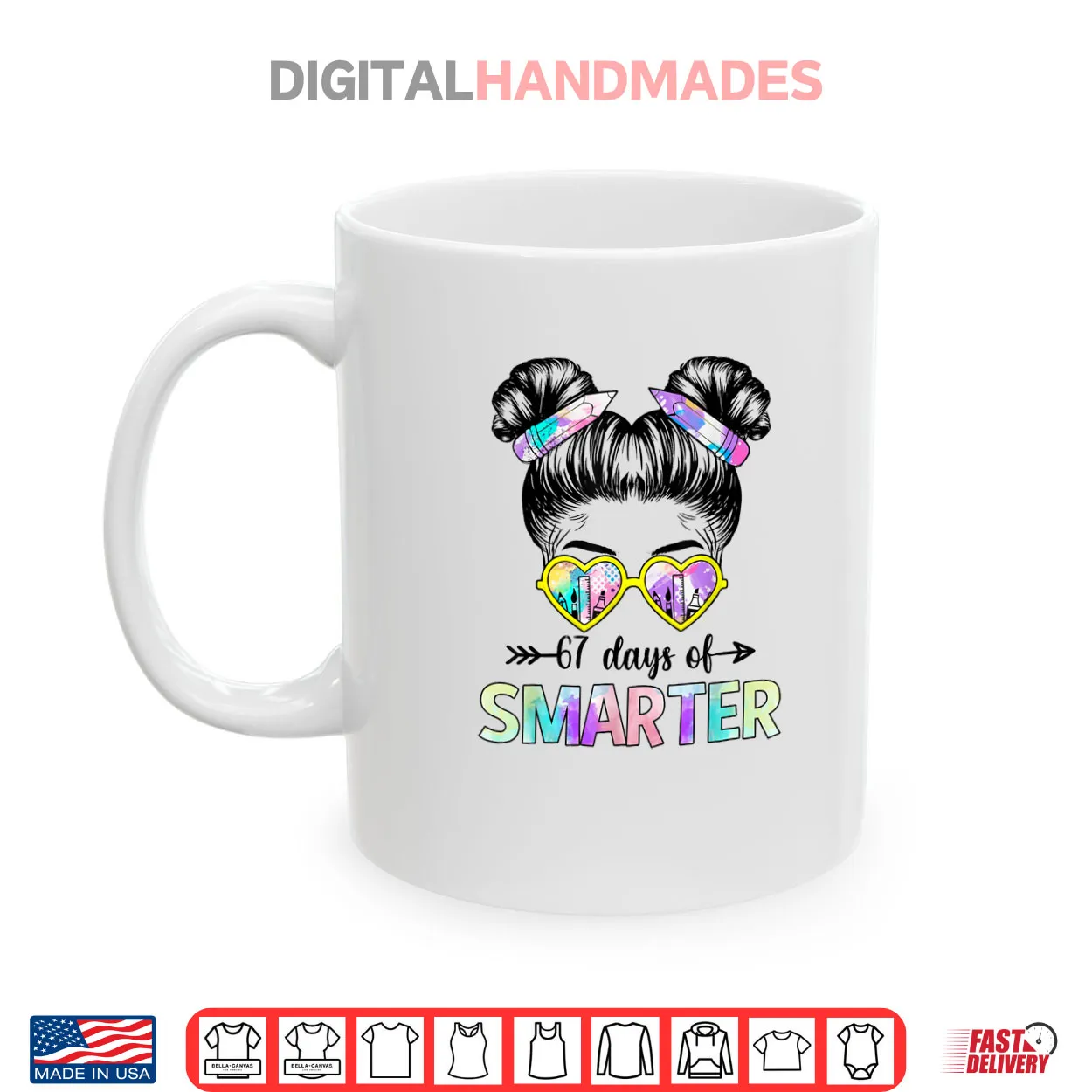 67 Days Smarter Messy Bun Six Seven 67th Day of School Girls Shirt, 67 Days Smarter, Messy Bun, 67 Meme, Six Seven, Girls, School, Cute