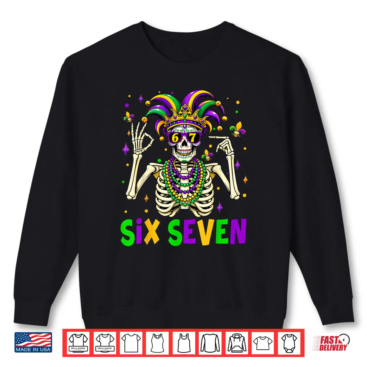 67 Mardi Gras Skeleton 6 7 Meme Mask Beads Six Seven Shirt