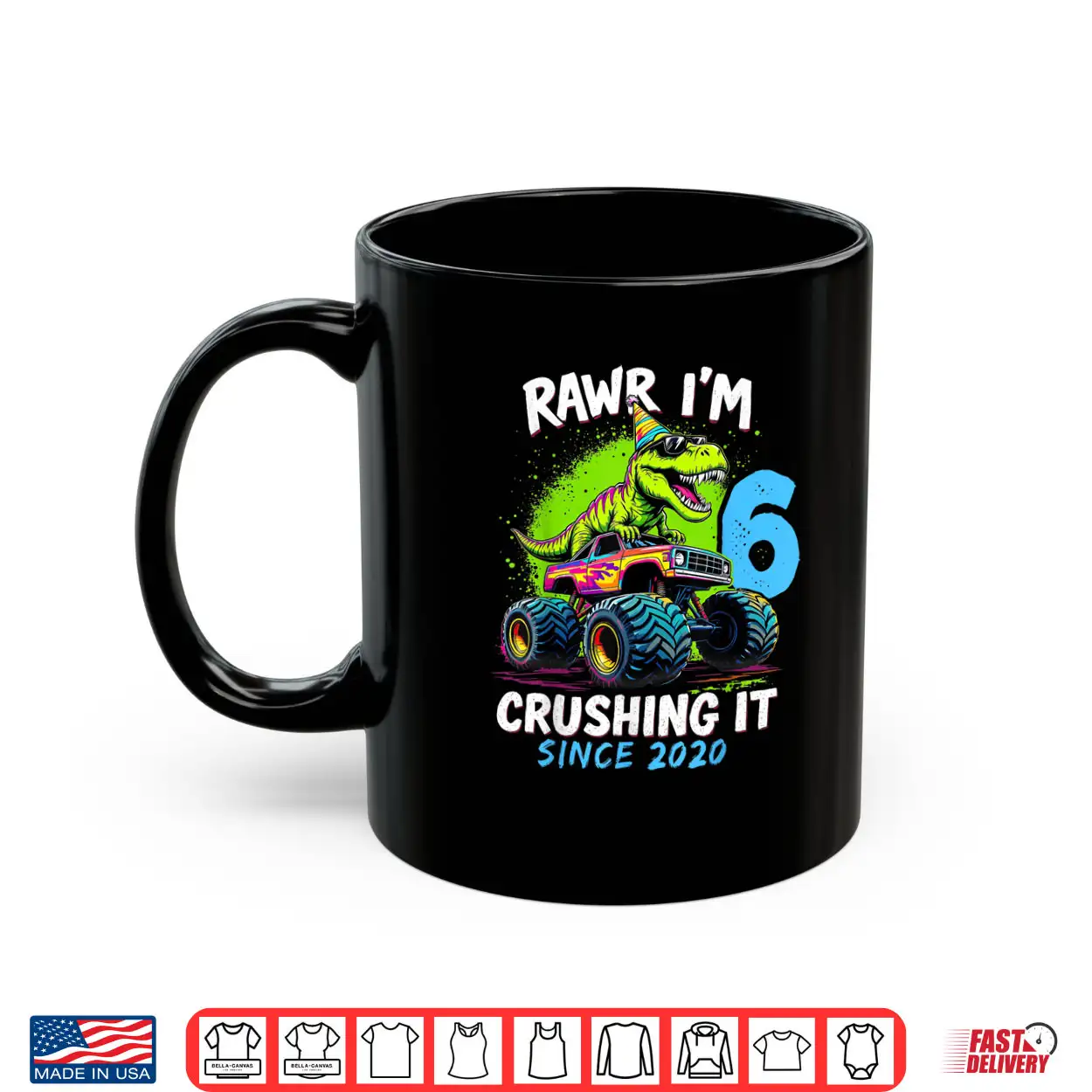 6th Birthday Monster Truck Dinosaur Party Boys Rawr I’m 6 Shirt