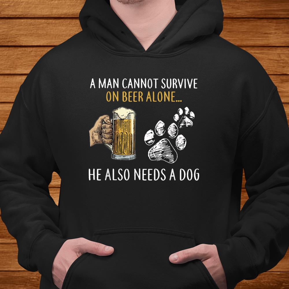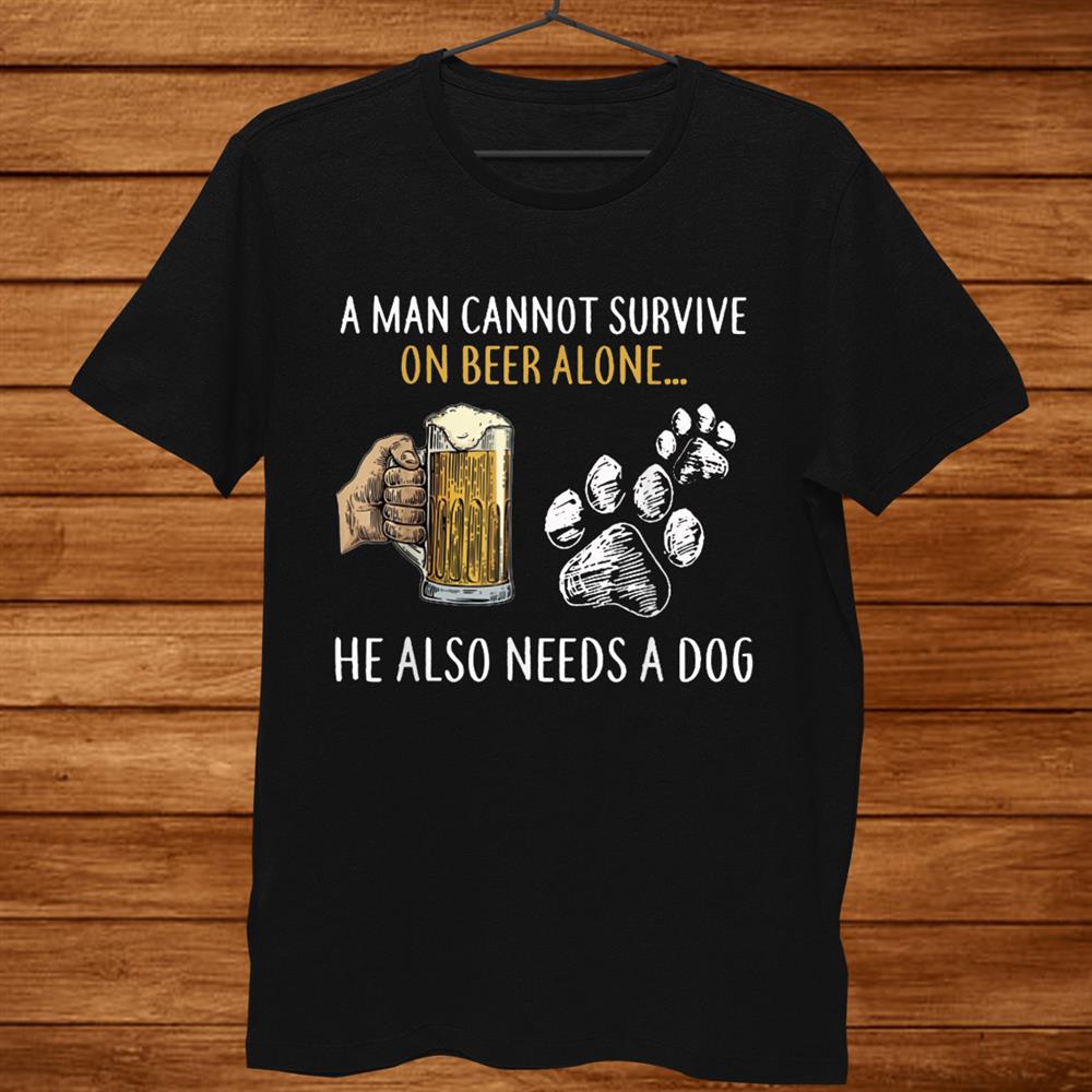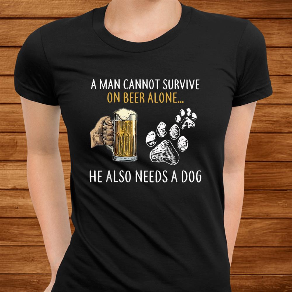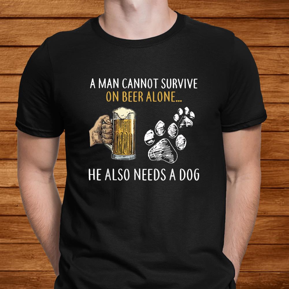 A Man Cannot Survive On Beer Alone He Also Needs A Dog Shirt