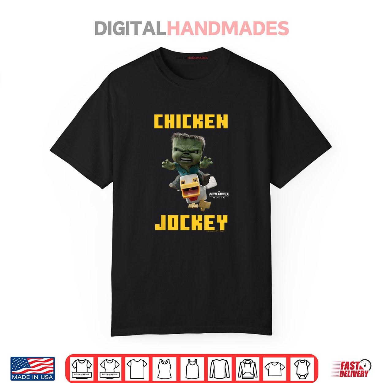 Minecraft shirt, chicken jockey tee, baby zombie logo, gamer merch, pixelated game apparel, Minecraft fanwear, retro game shirt, zombie character tee, Minecraft novelty shirt, blocky graphic tee
