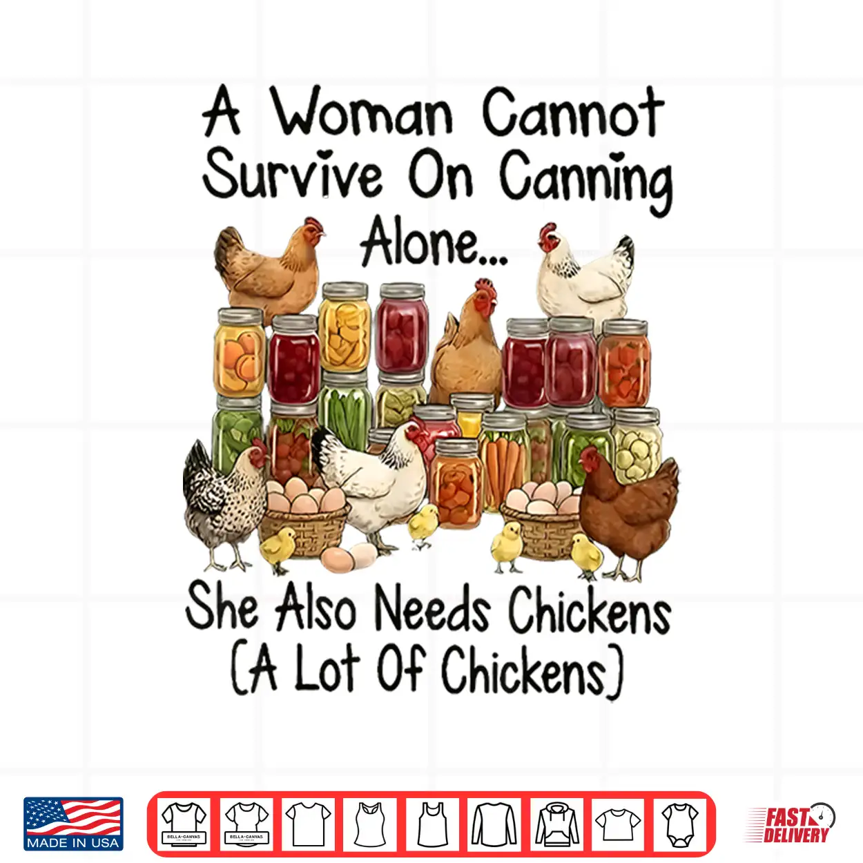 A Woman Cannot Survive On Canning Alone She Needs Chickens Shirt