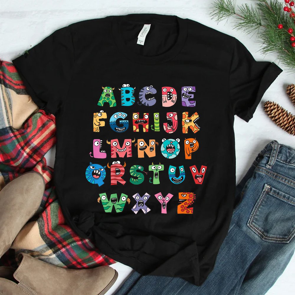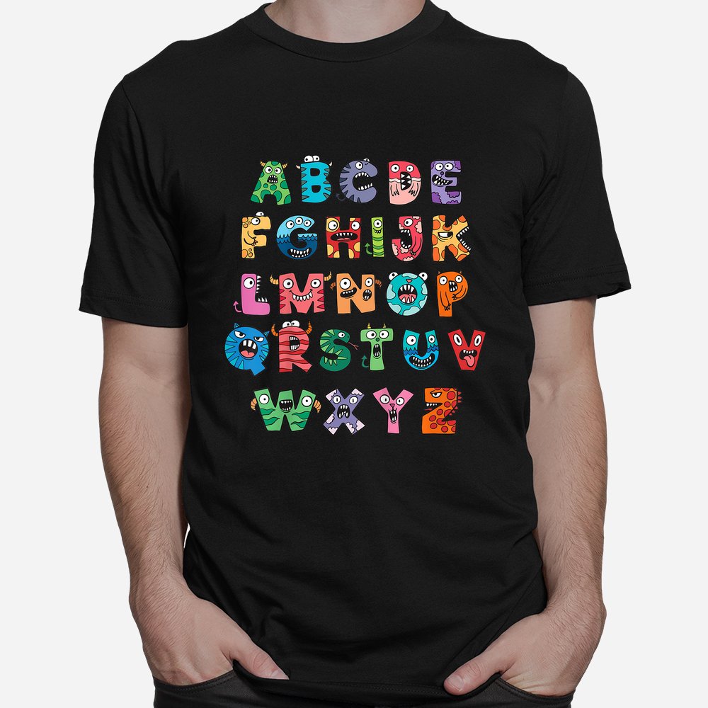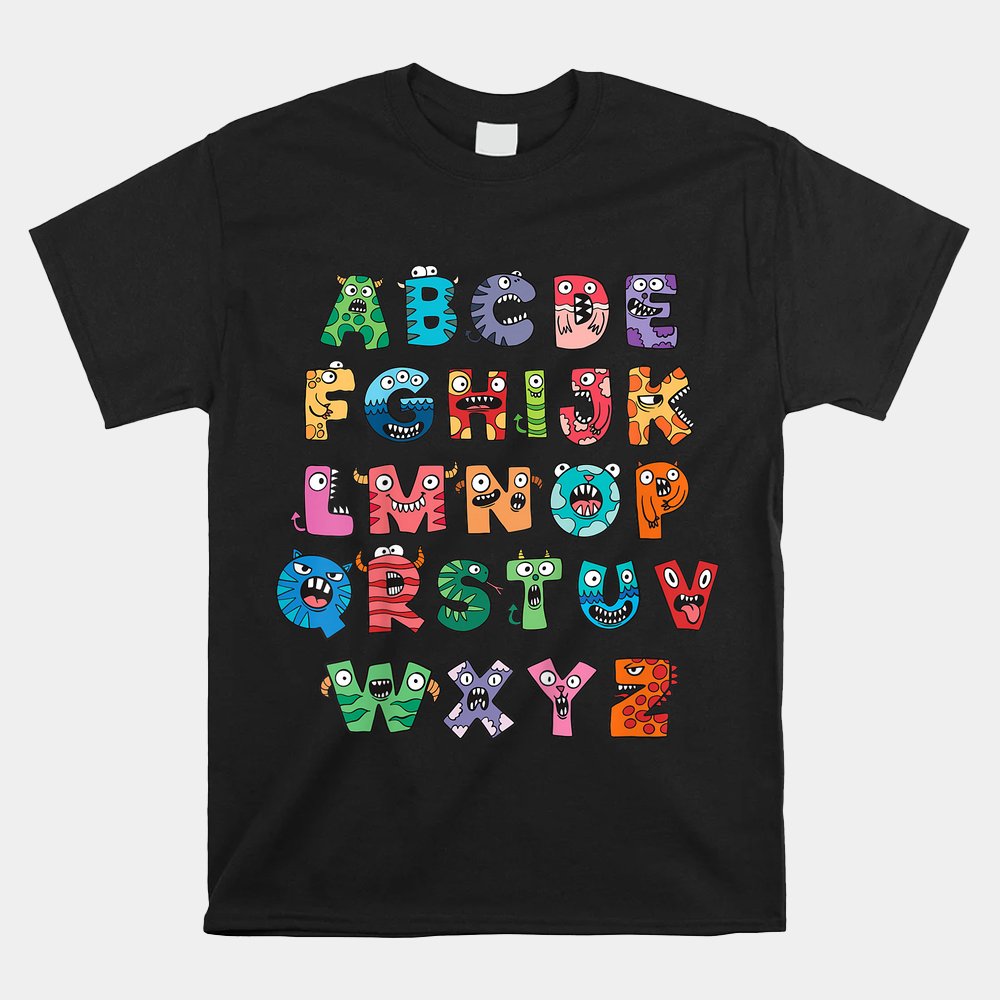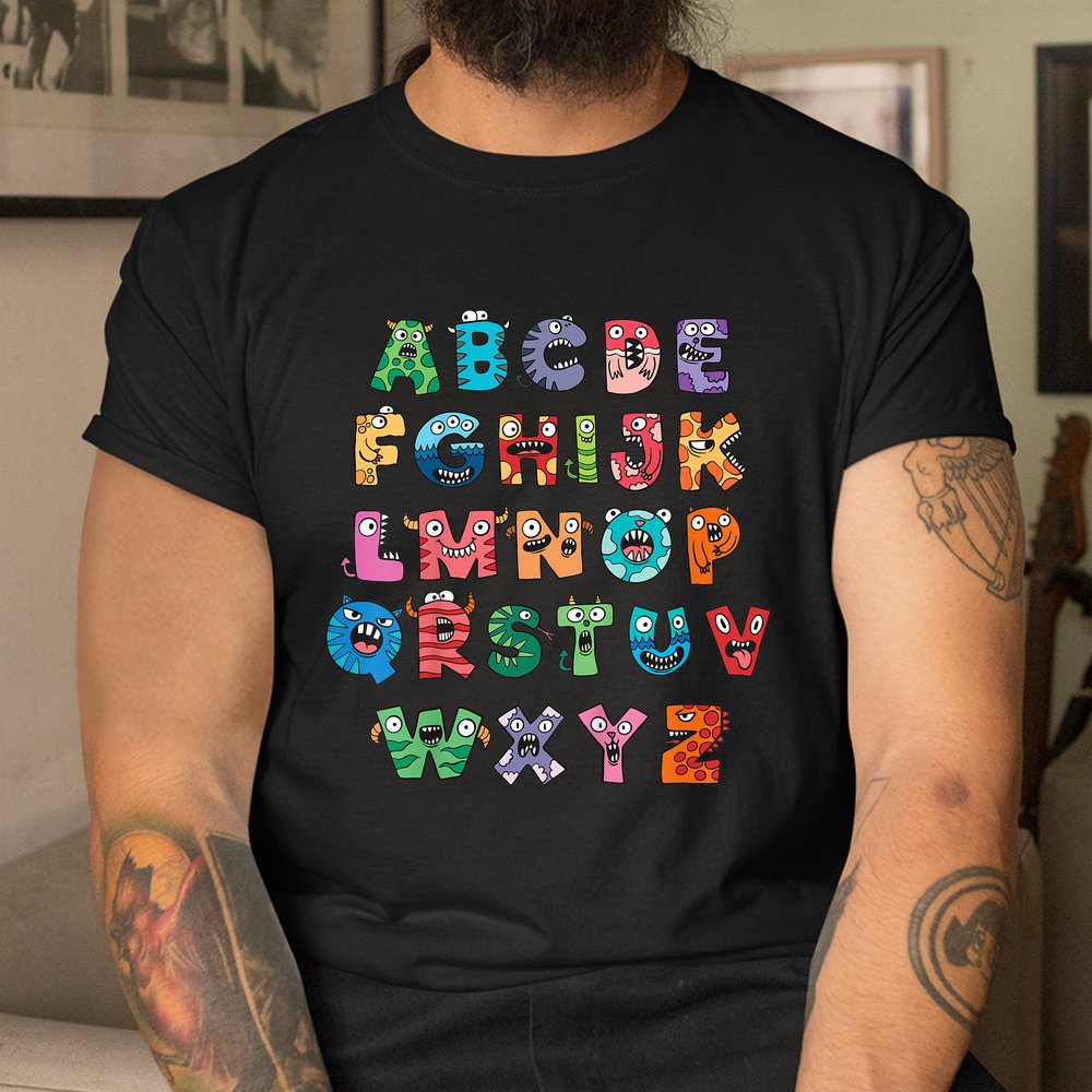 Abc Cute Monster Alphabet Halloween Teacher Shirt, hoodie, sweatshirt, long sleeve and ladies T-shirt