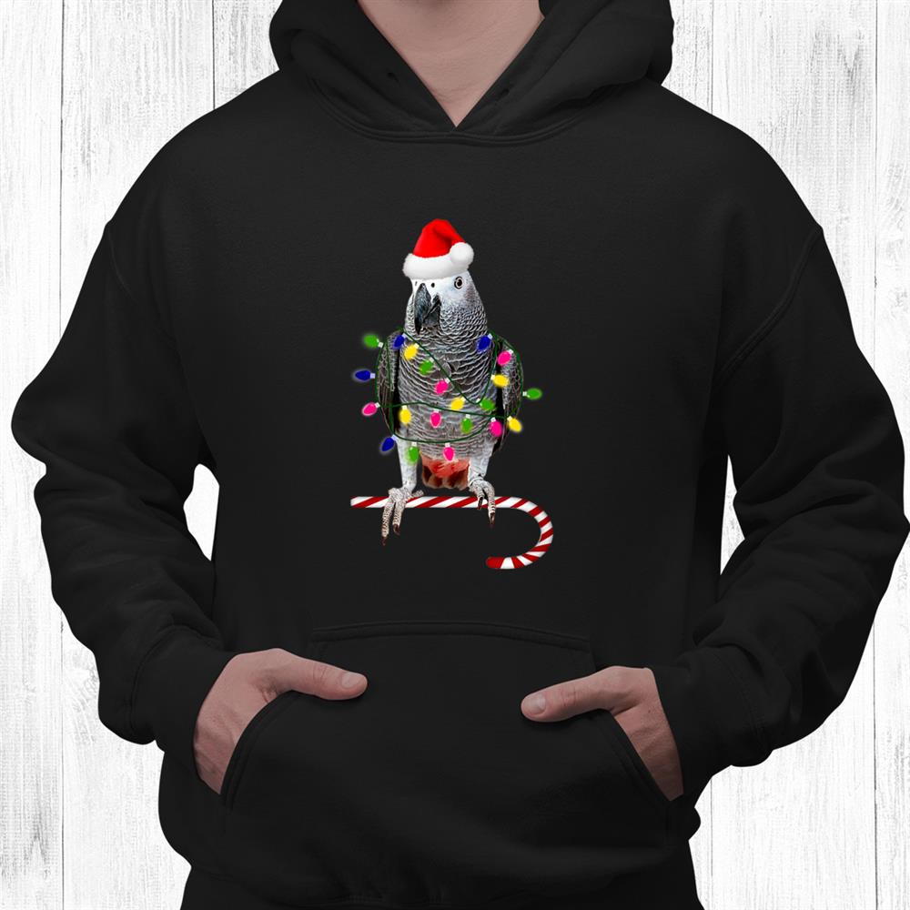 African Grey Parrot Funny Christmas Santa Hat On Shirt, hoodie, sweatshirt, long sleeve and ladies T-shirt