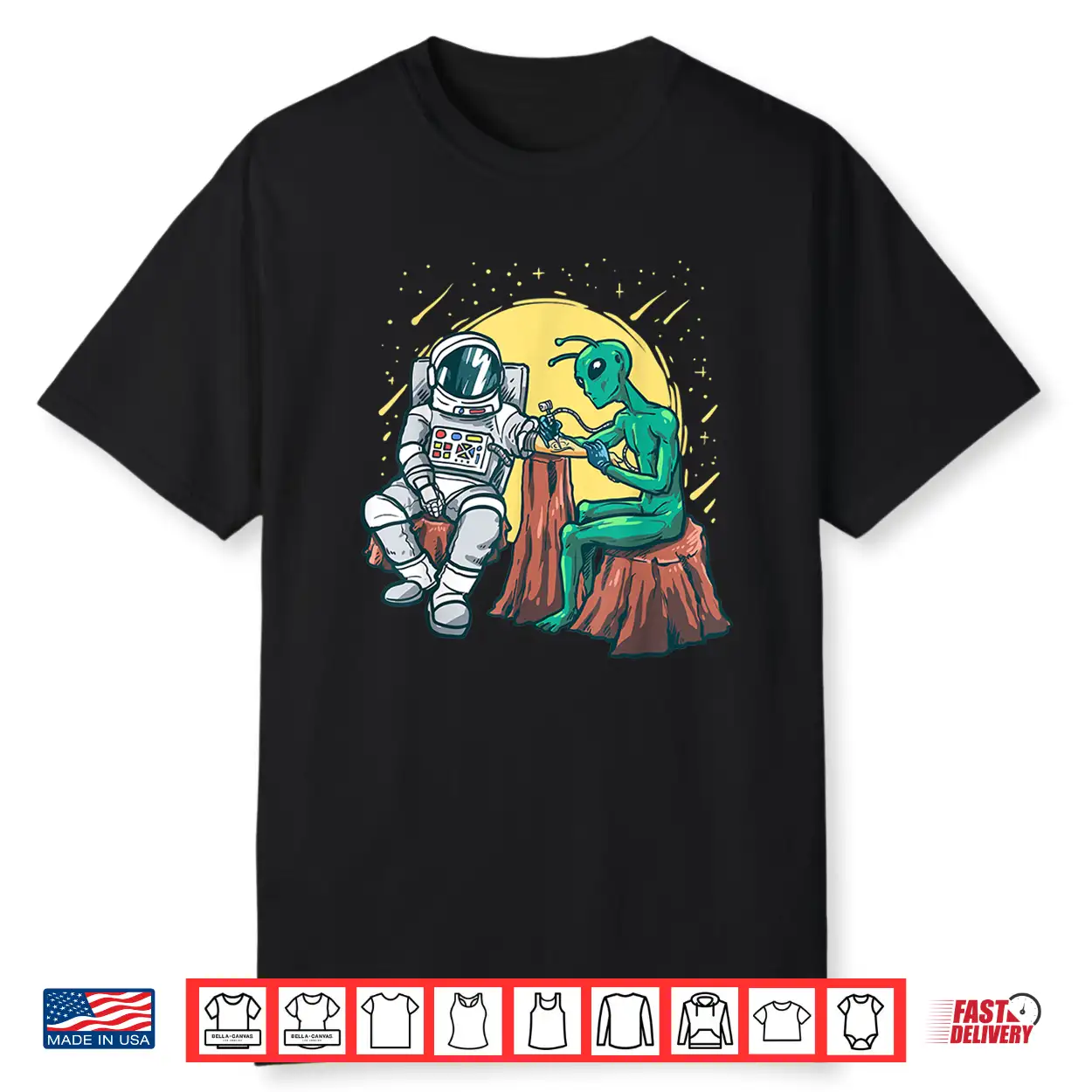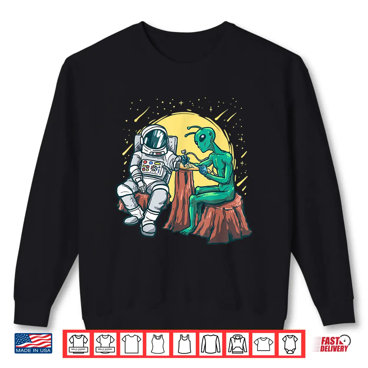 Alien Inking Astronaut Funny Tattoo Artist Graphic Shirt