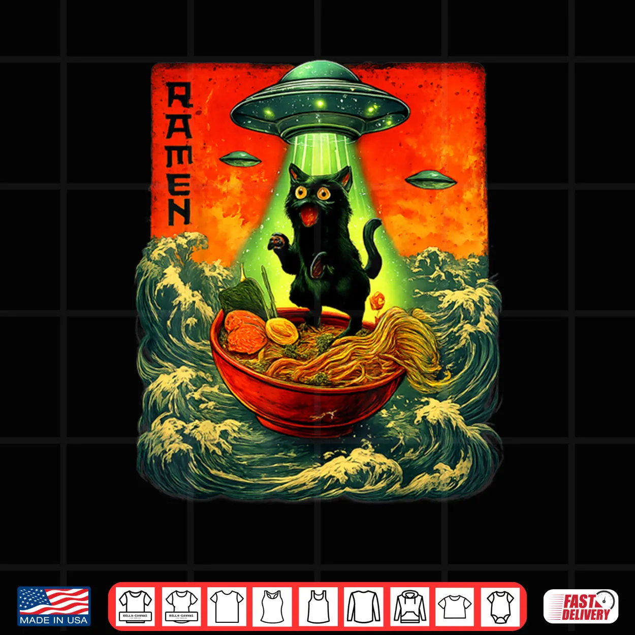 Alien Ramen Cat UFO Japanese Retro Art Shirt