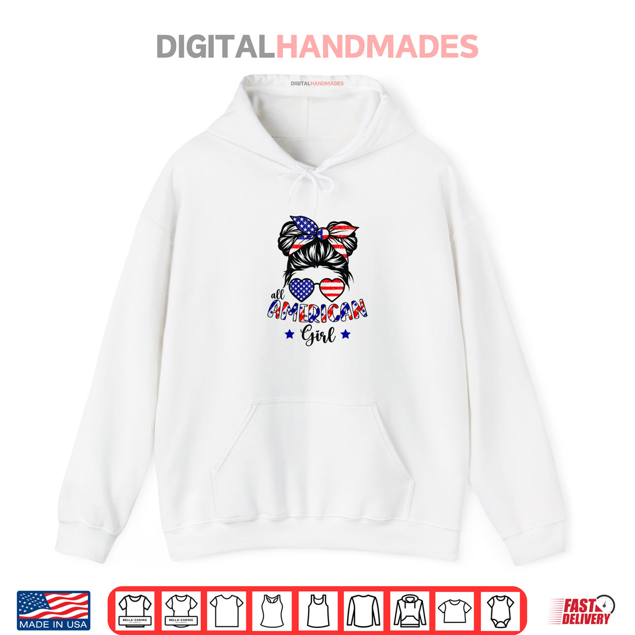 All American Girl 4th Of July Shirt Women Messy Bun USA Flag Shirt