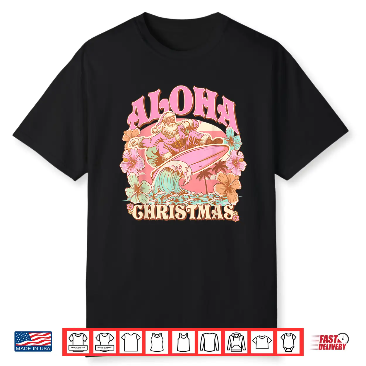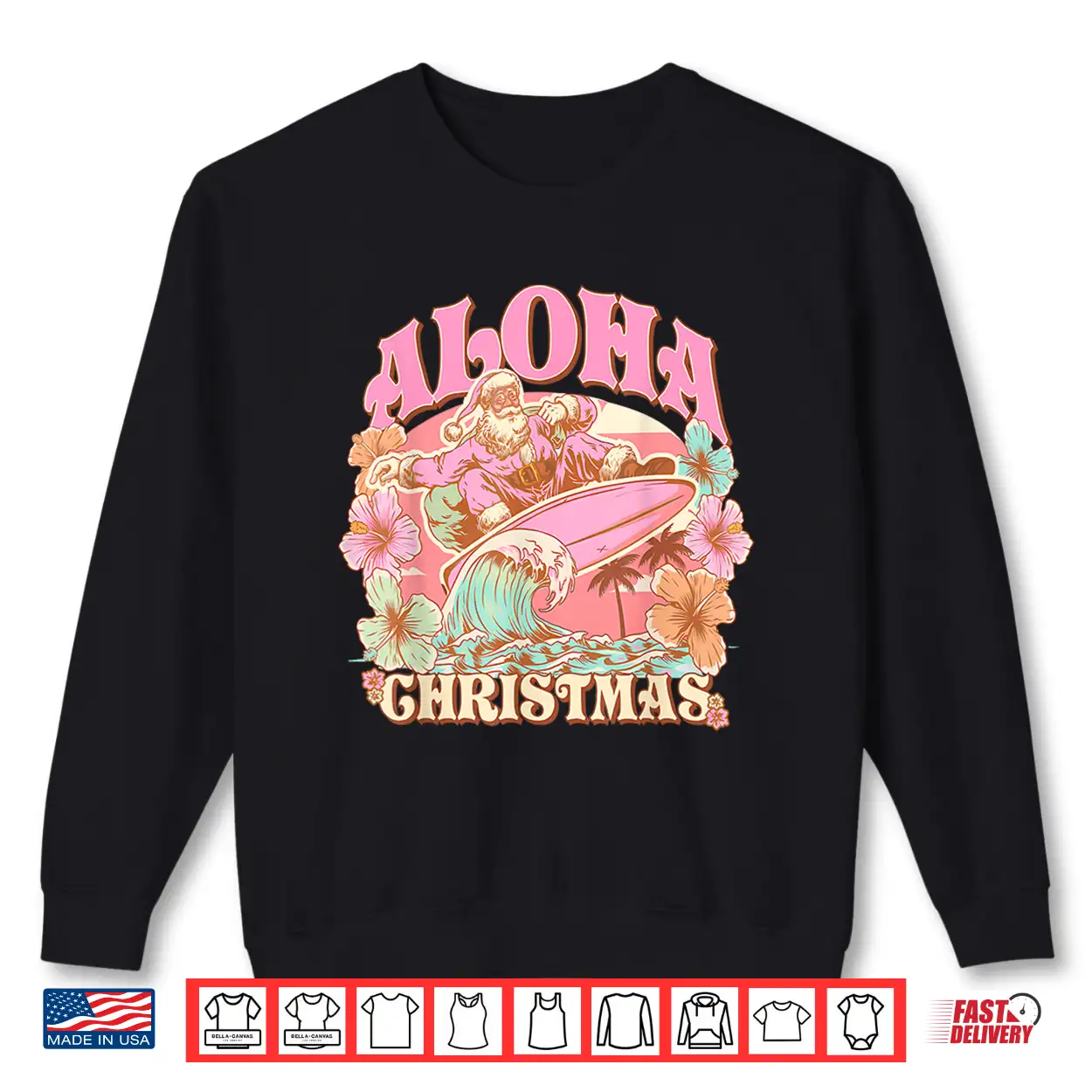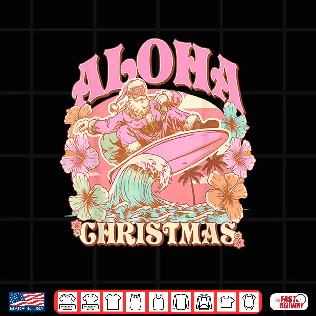 Aloha Christmas Santa Claus Surfing Hawaiian Mele Kalikimaka Shirt