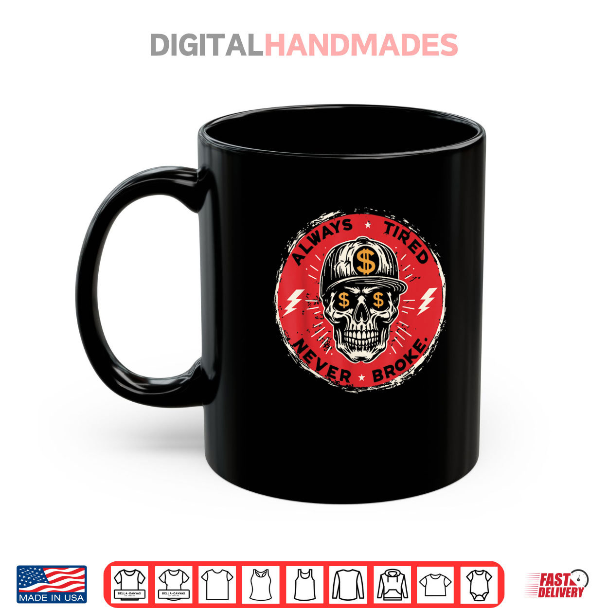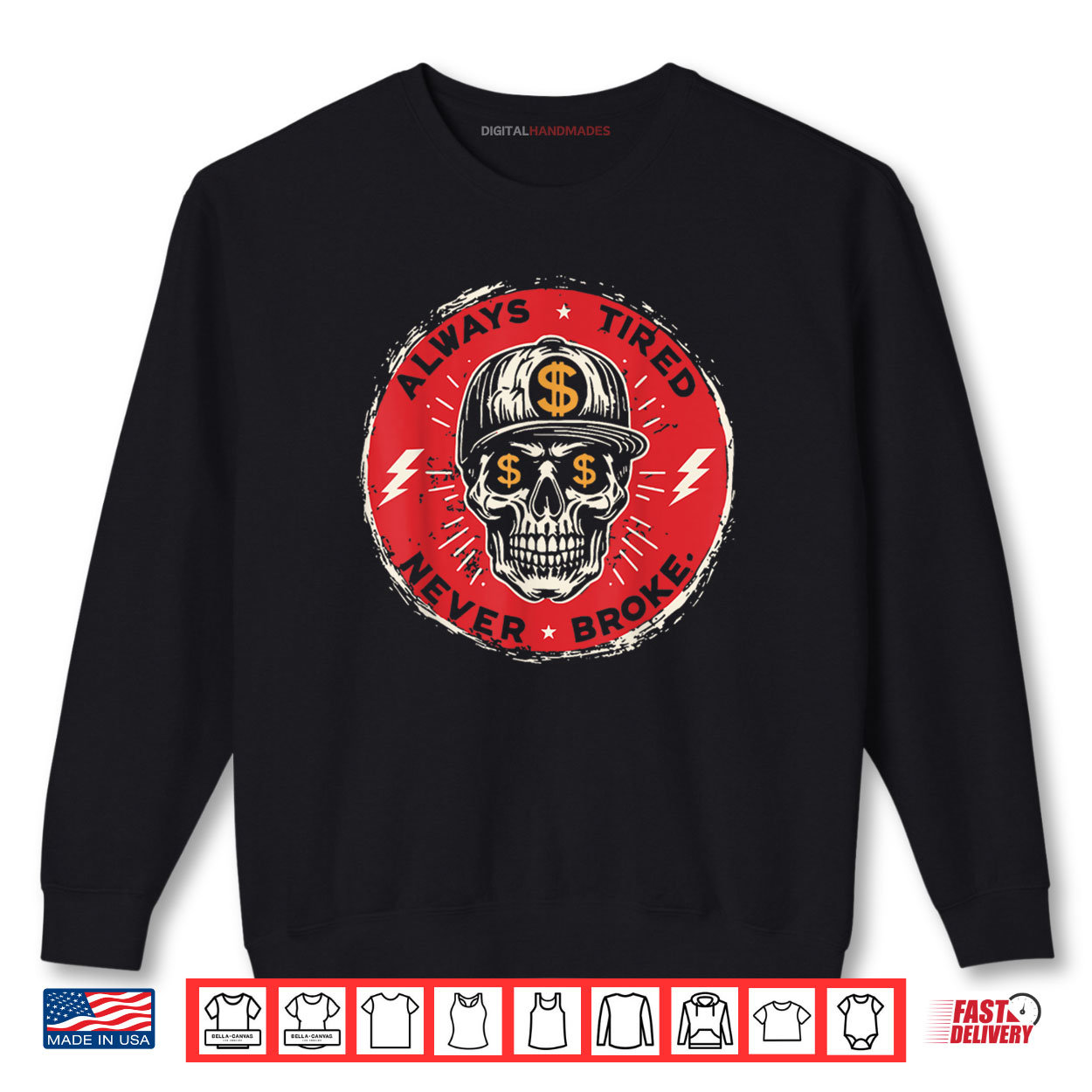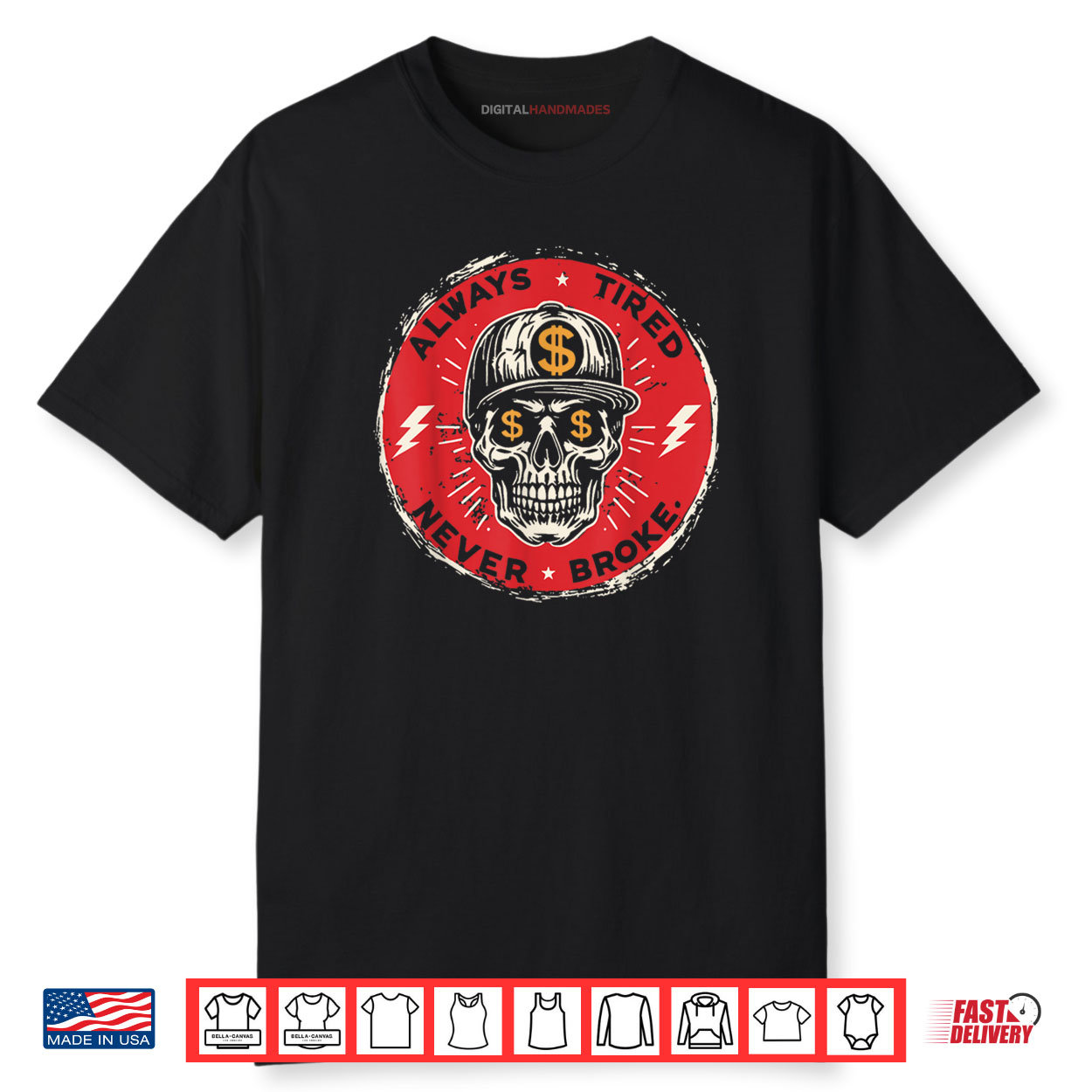 Always Tired Never Broke Skull Shirt, Always Tired Never Broke Shirt, Skull Graphic Shirt, Motivation Shirt, Humorous Slogan Shirt, Money Mindset Shirt