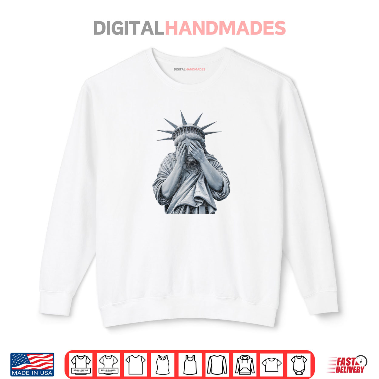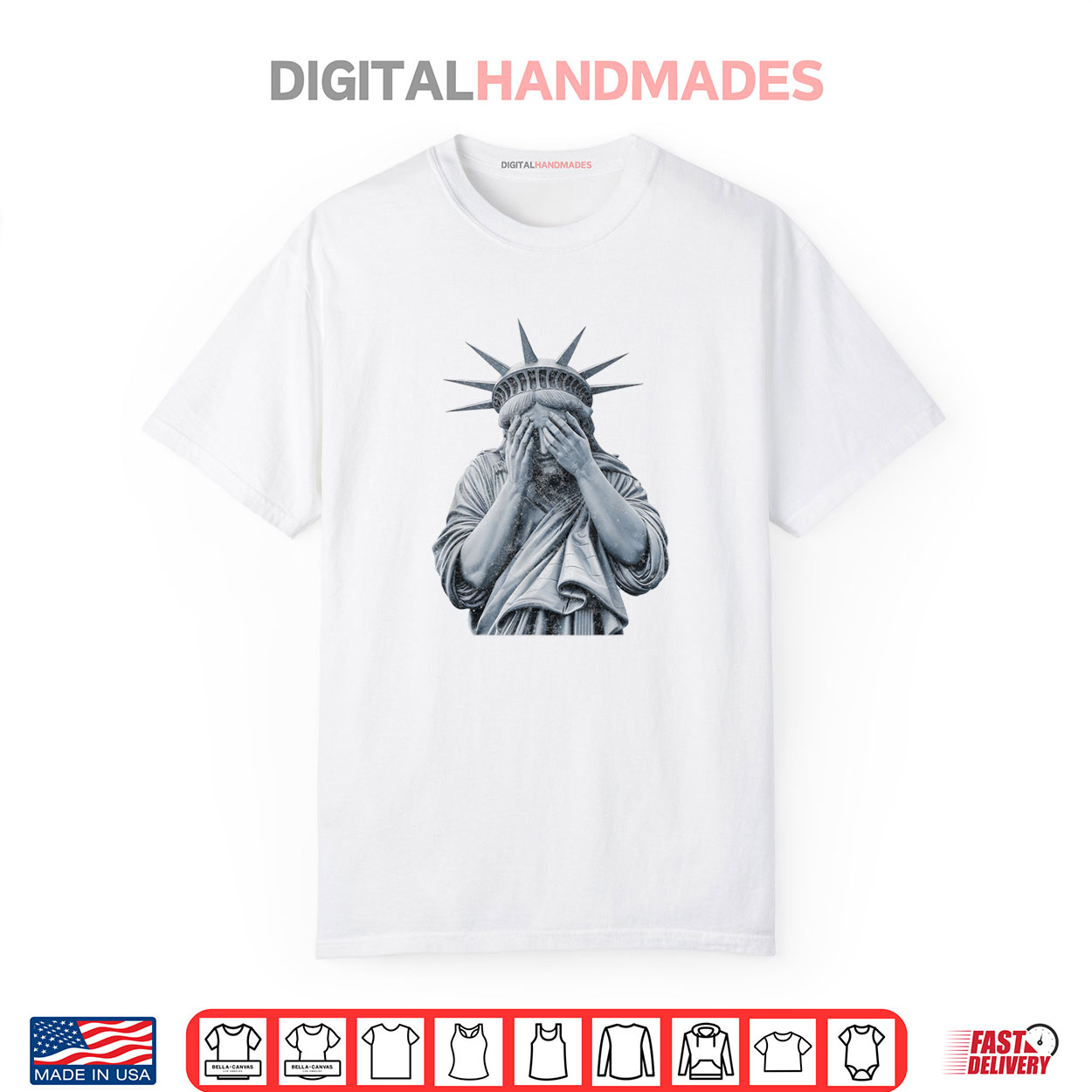 funny liberty meme shirt, crying statue of liberty tee, america humor apparel, political satire shirt, freedom meme tee, emotional usa design, protest fashion tee, viral american joke shirt, edgy liberty merch, statue parody shirt