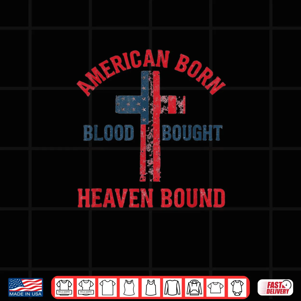 American Born, Blood Bought, Heaven Bound, Religious, Patriotic, Christian, Funny, Witty, Quote, Statement