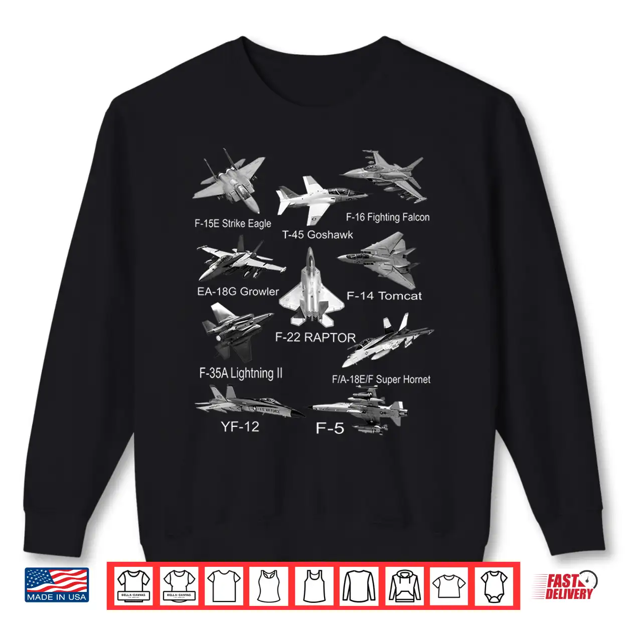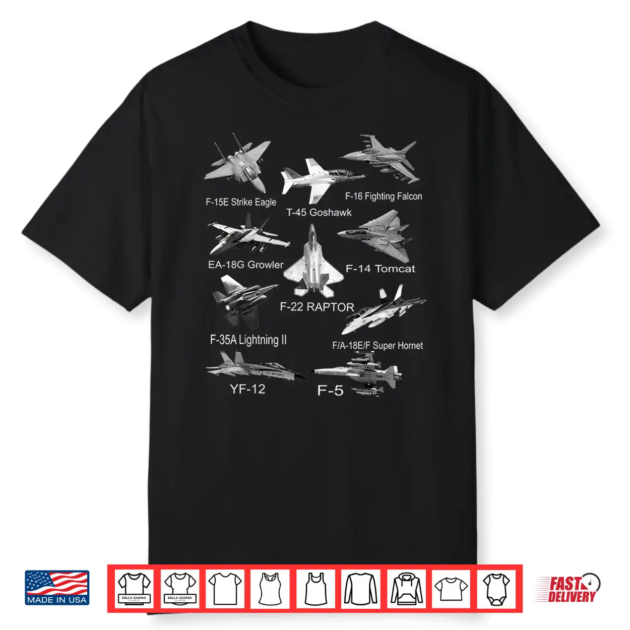American Fighters Jets F22 Raptor F14 Tomcat Plane Spotting Shirt