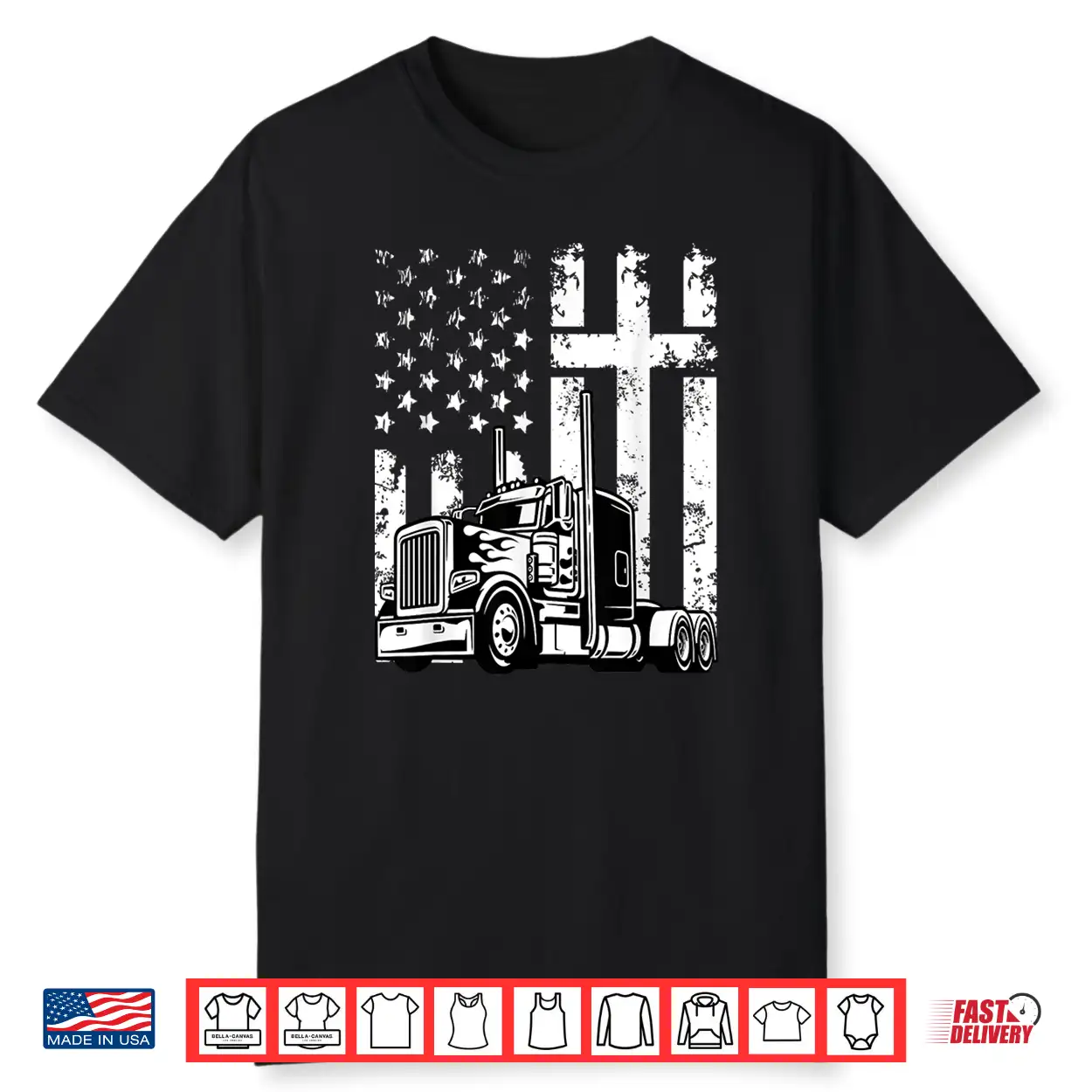 American Flag Christian Patriotic Semi Truck Driver Shirt