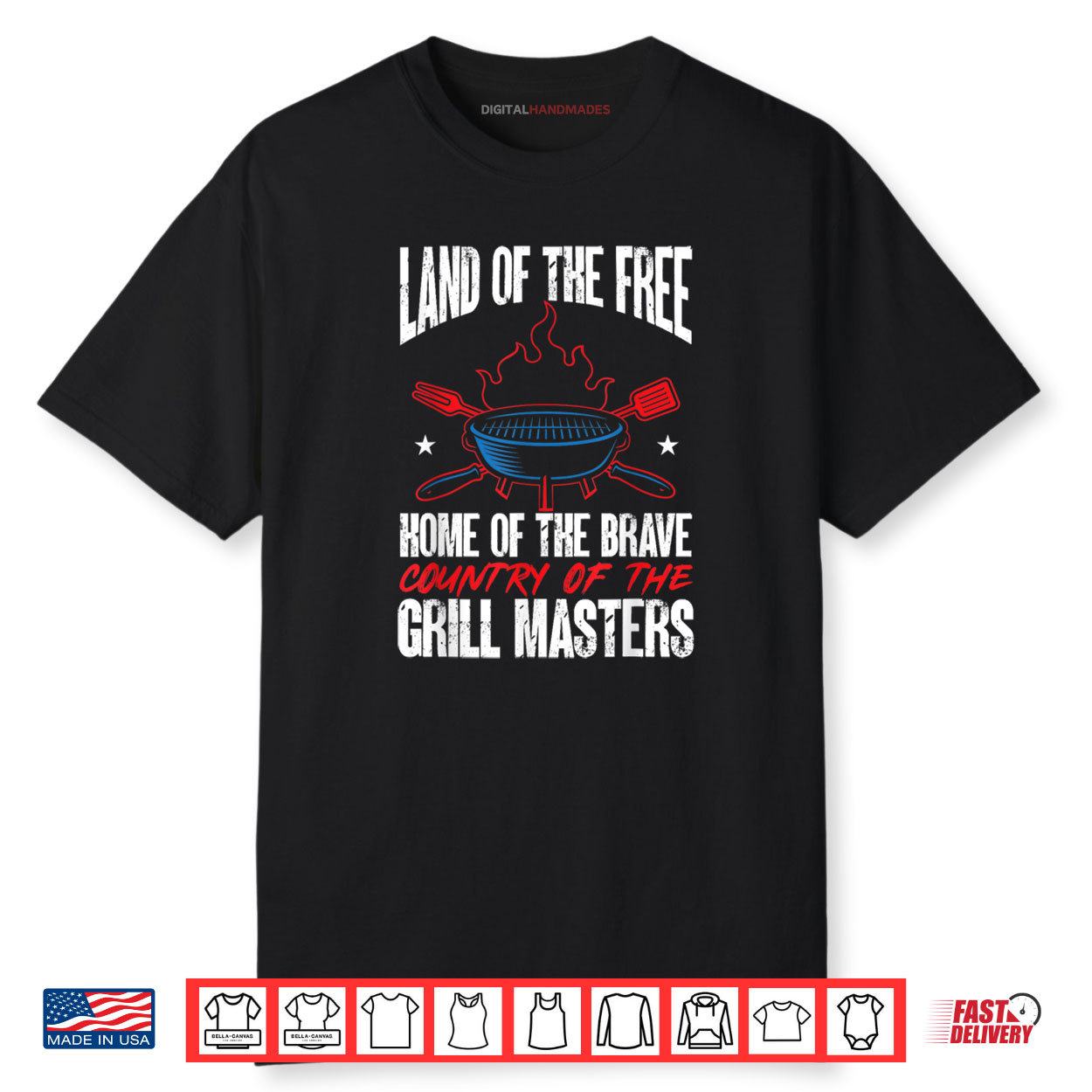 American Flag Land Of The Free Grill Master 4th Of July Shirt, Grill Master Land Of The Free July 4th Tee Shirt, American Flag BBQ King Holiday Gift Shirt, Patriotic Cookout And Grilling Apparel Shirt, Fourth Of July For The Barbecue Master Shirt, Red White And Blue And BBQ Smoke Shirt, Stars And Stripes And Perfect Steaks Shirt, Independence Day Pitmaster Pride Shirt, Freedom And Grilling Since 1776 Shirt, All American BBQ Legend Shirt
