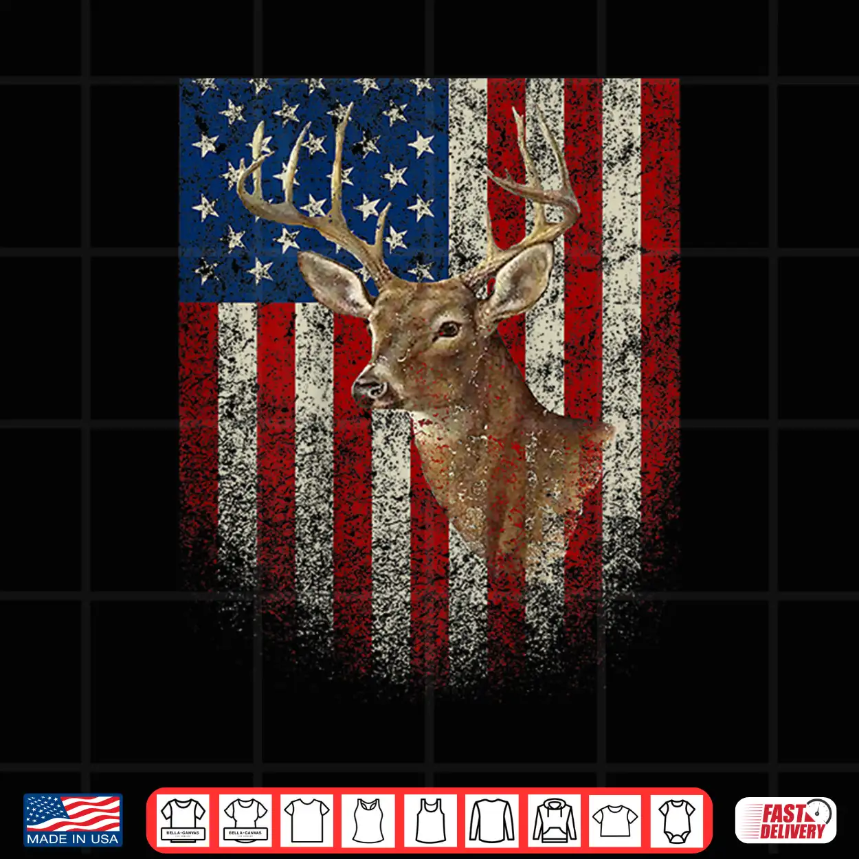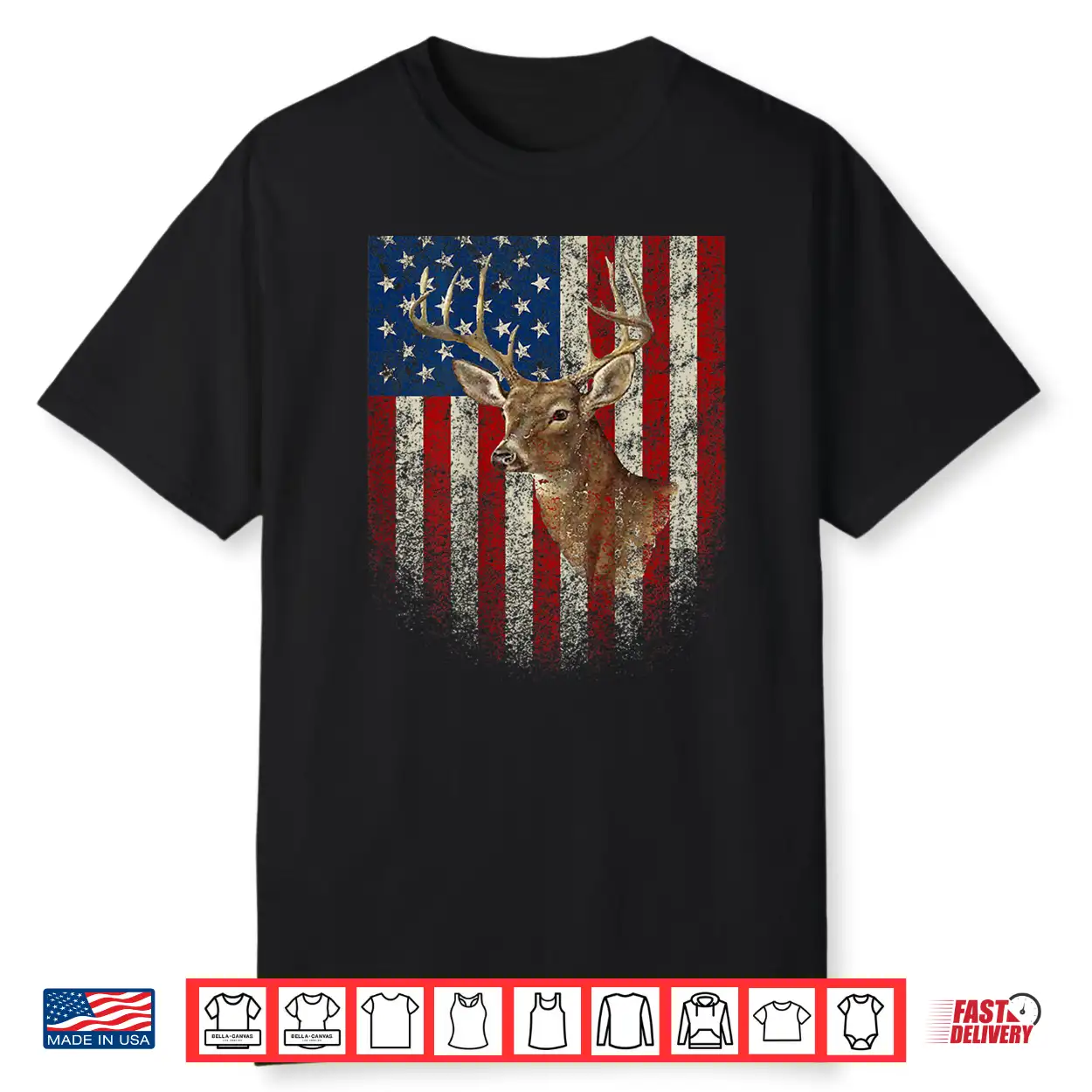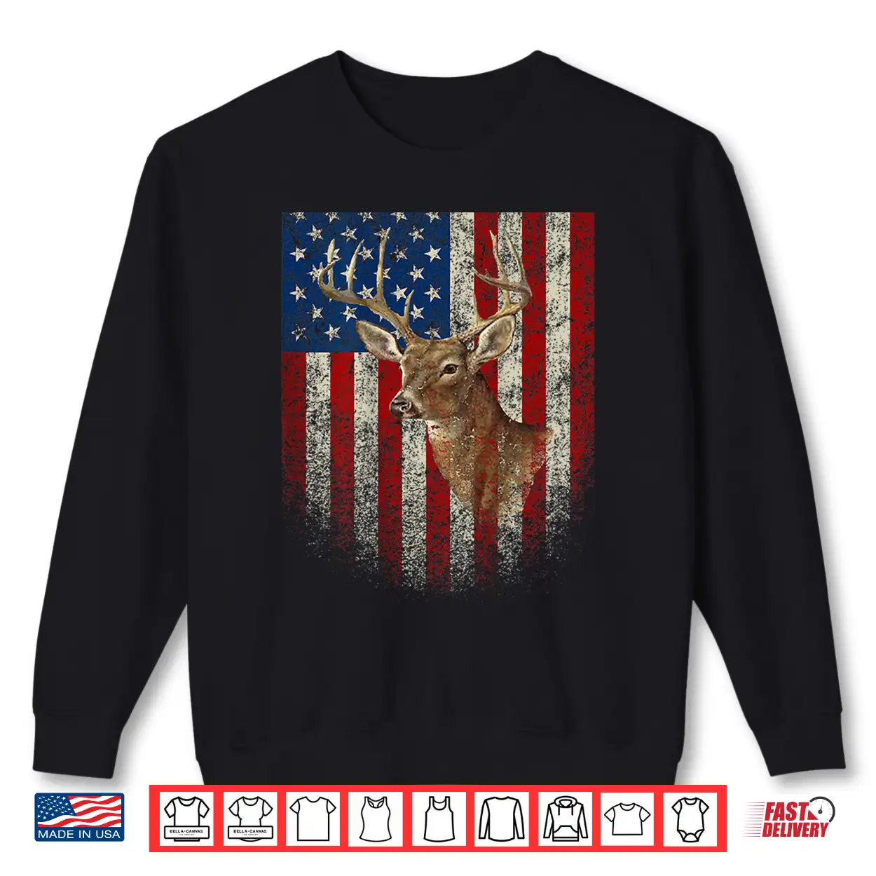 American Flag (Print On The Back) Deer Antlers Hunting Shirt
