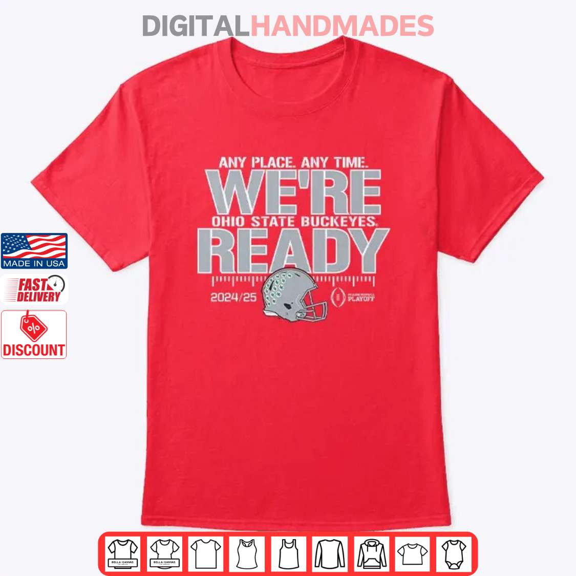 This Any Place Any Time We’re Ohio State Buckeyes Ready Playoffs 2024-25 Hoodie is a statement of pride, commitment, and the belief that the Buckeyes are always ready to perform, no matter the circumstances.