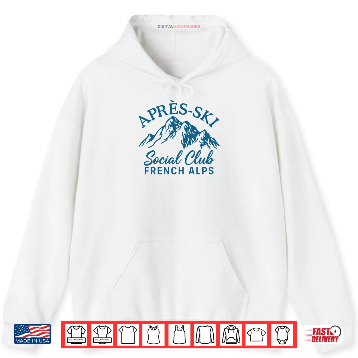 apres ski, social club, french alps, ski apparel, winter sports, mountain life, snow vacation, retro ski, funny ski, travel shirt