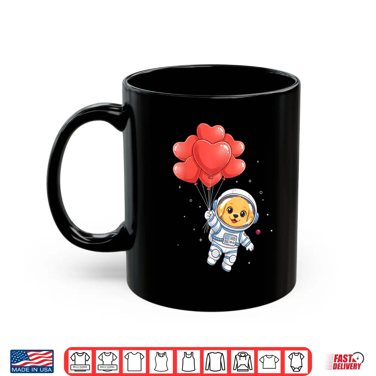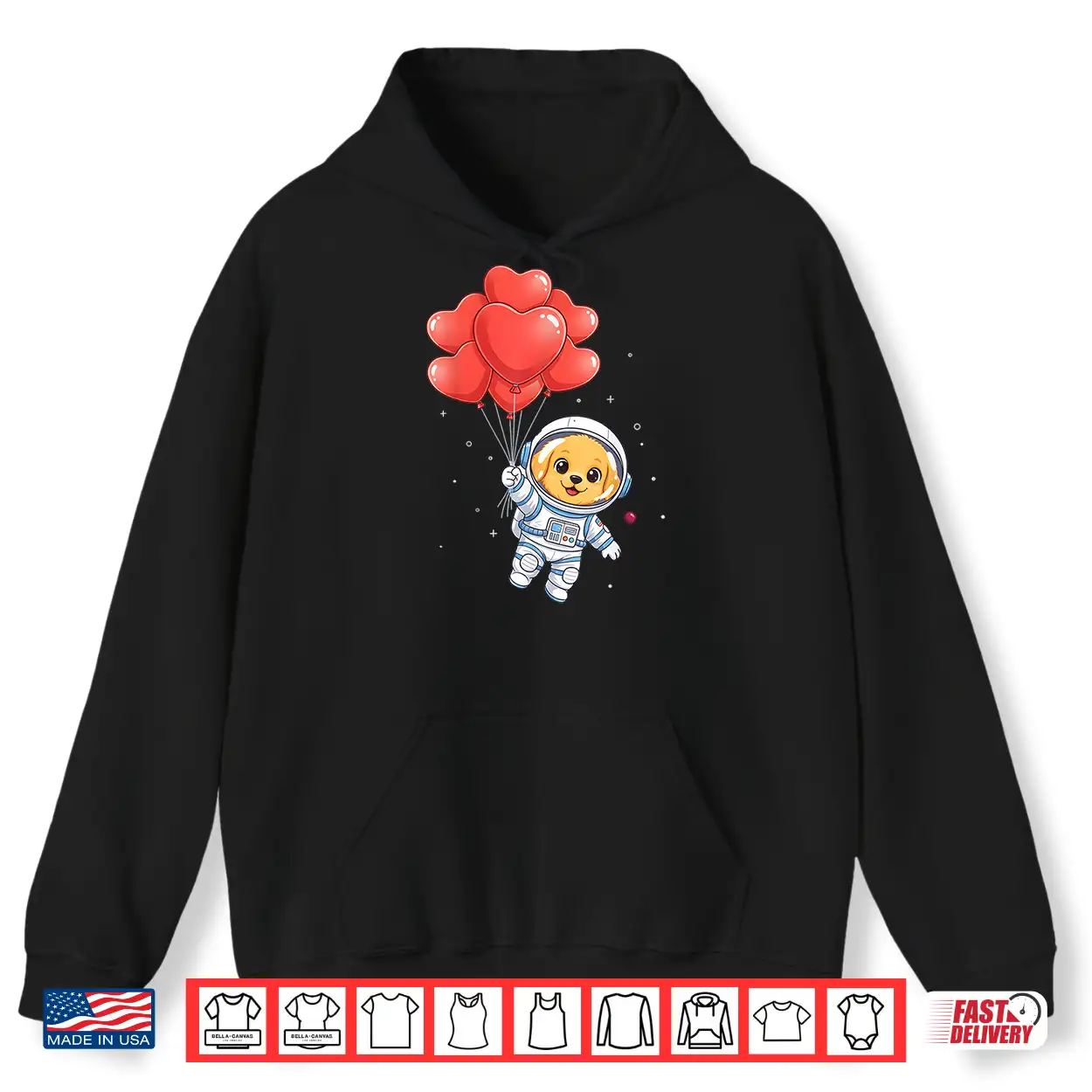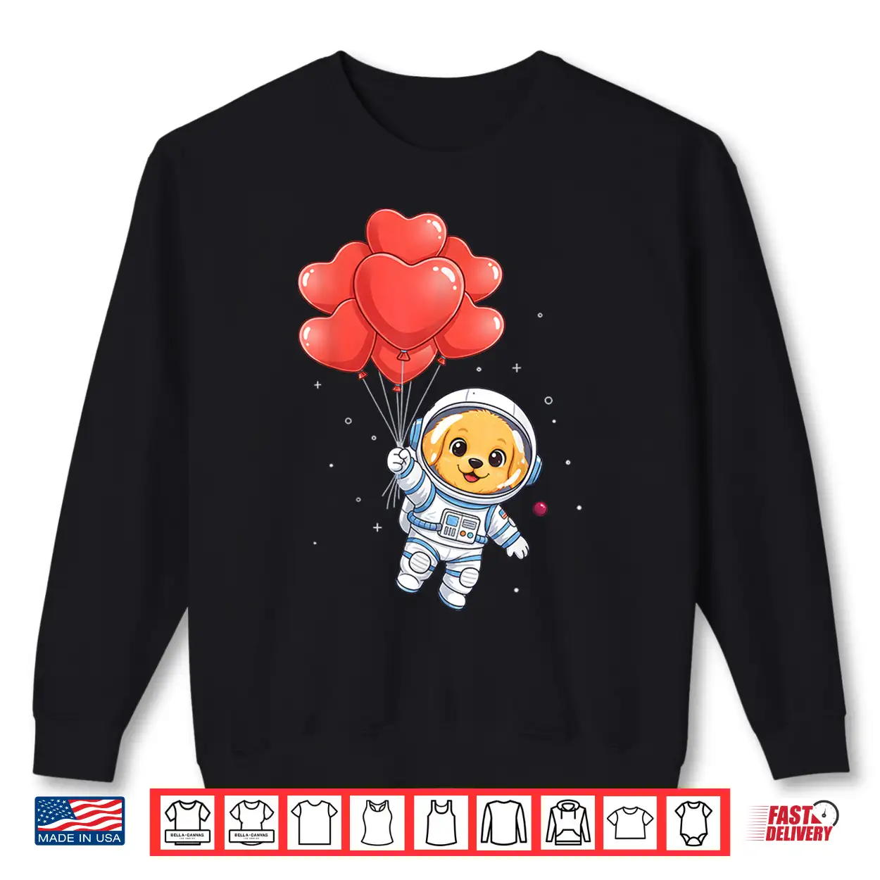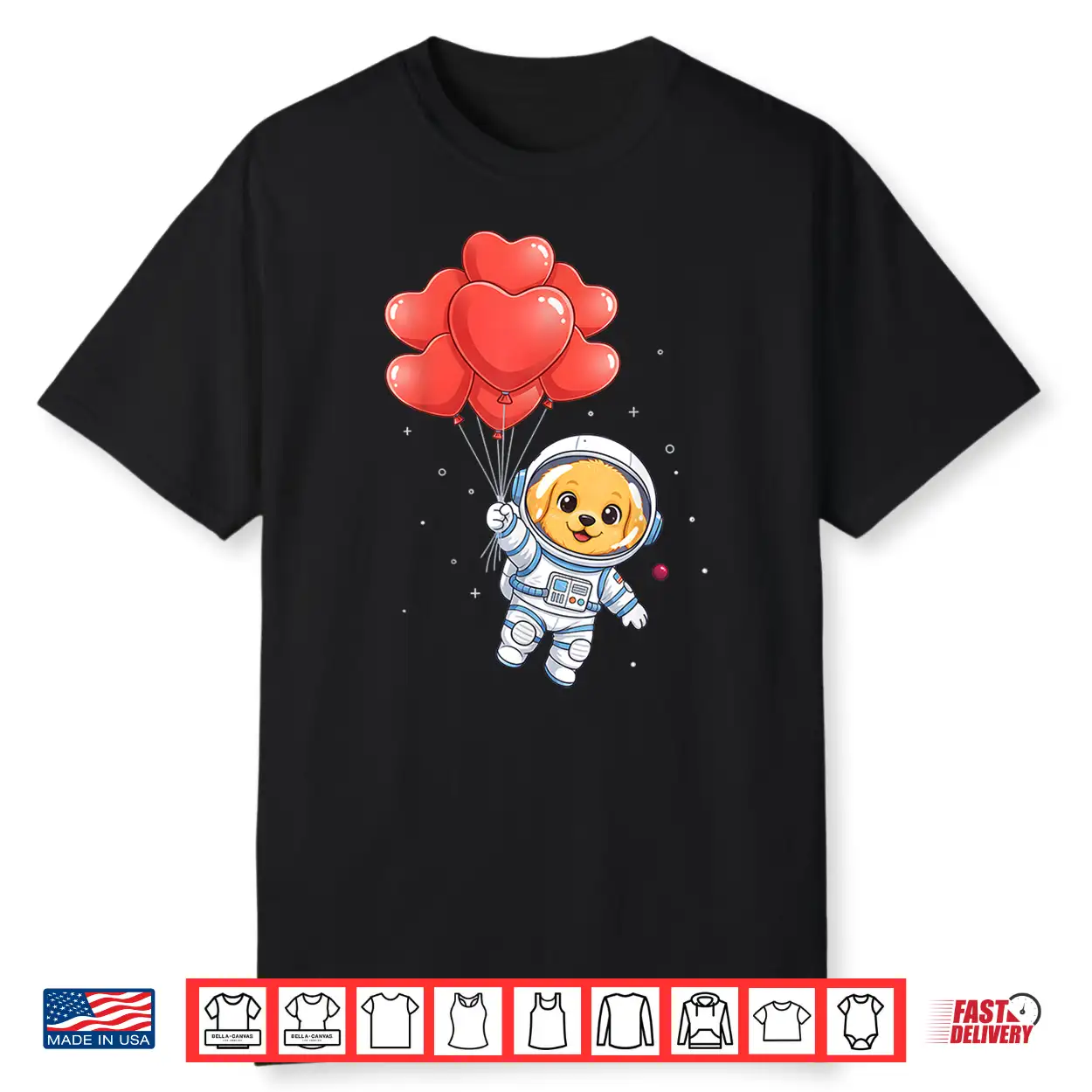 Dog, Valentine, Space, Astronaut Golden Retriever, Heart Balloon, shirt