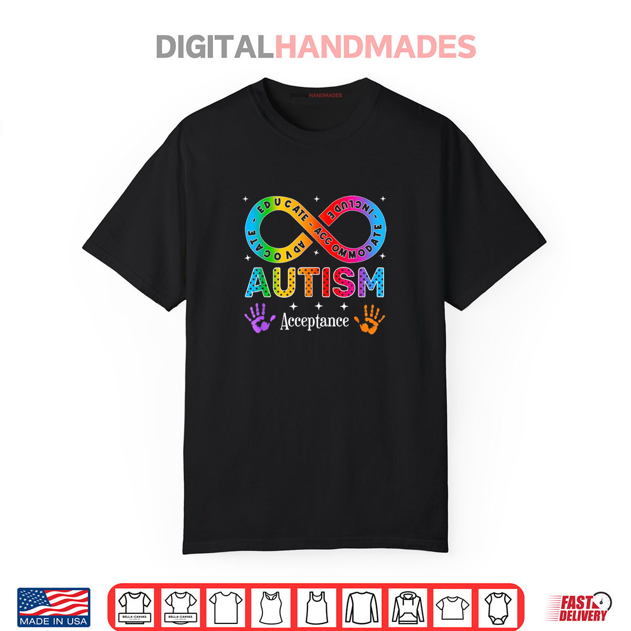 autism awareness infinity symbol, acceptance design graphic tee, spring supportive apparel, funny autism humor shirt, bold infinity design, playful casual spring fashion, lighthearted awareness tee, springtime quirky style, humorous acceptance shirt, cute autism apparel