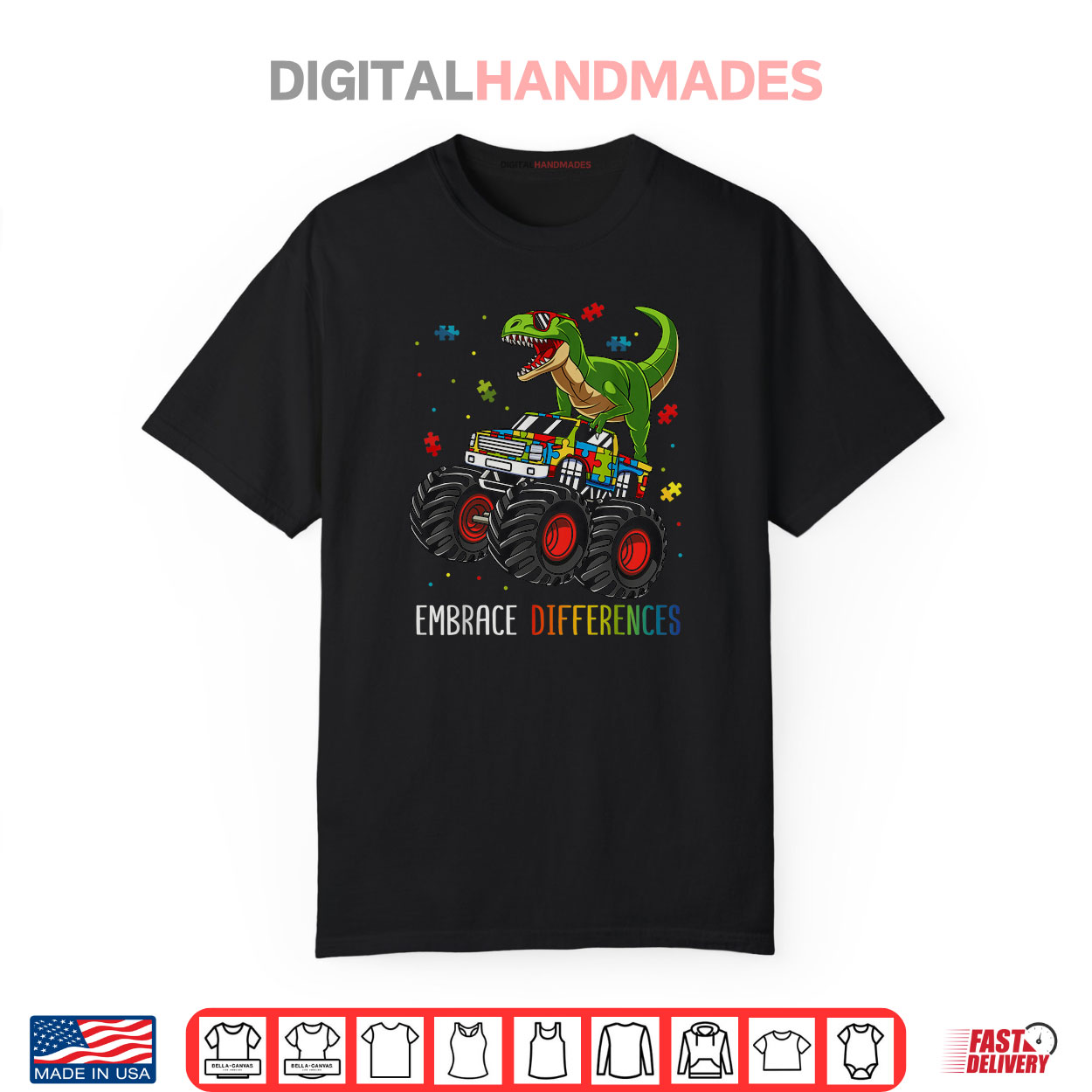 Autism Awareness Dinosaur T rex Monster Truck Boys Shirt