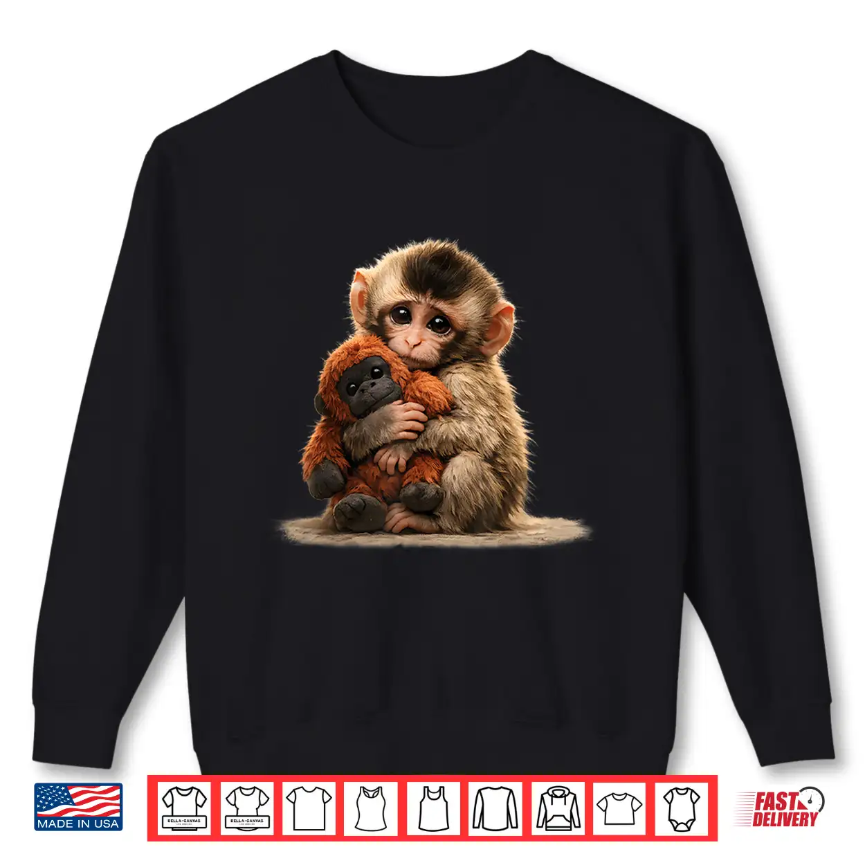 Baby Monkey Hugging Plush Japanese Macaque Meme Shirt