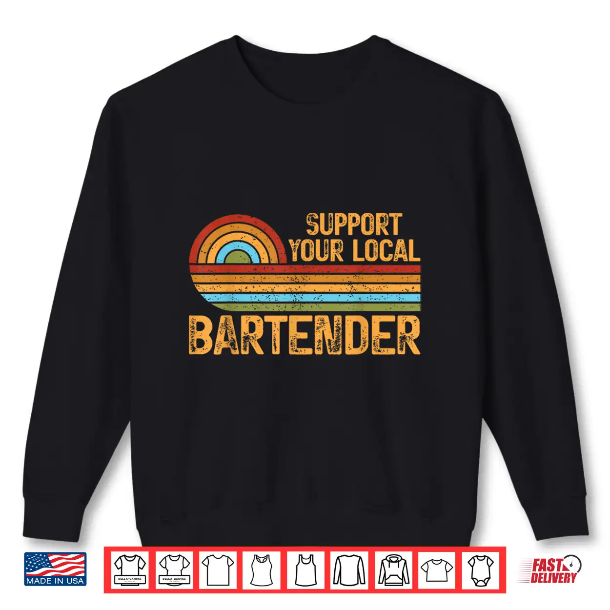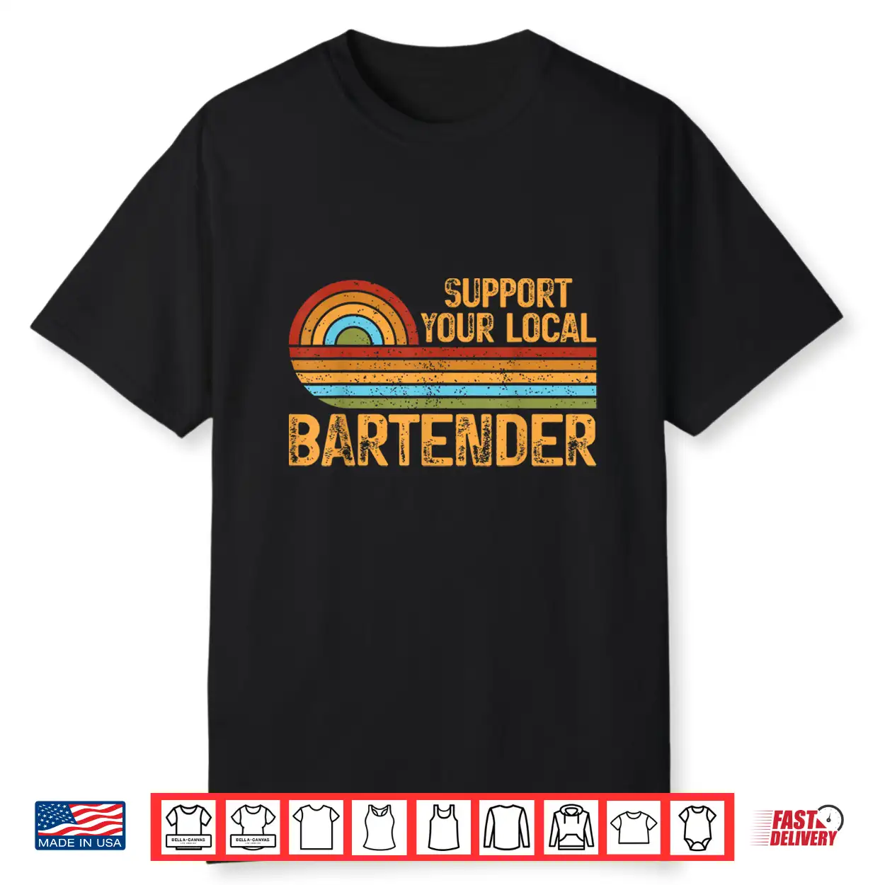 Bartender Design Support Your Local Retro Bar Tips Tipping Shirt
