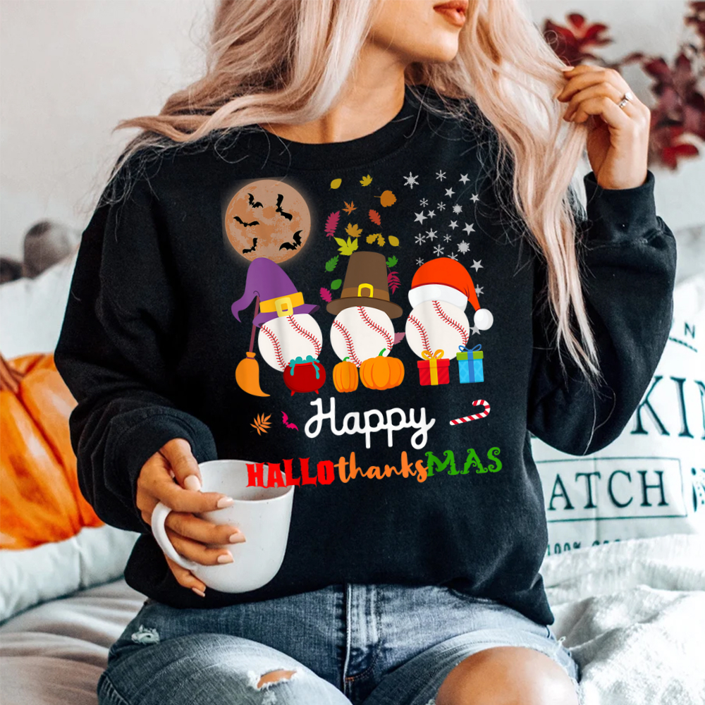 Baseball Halloween Thanksgiving Christmas Hallothanksmas Shirt, hoodie, sweatshirt, long sleeve and ladies T-shirt