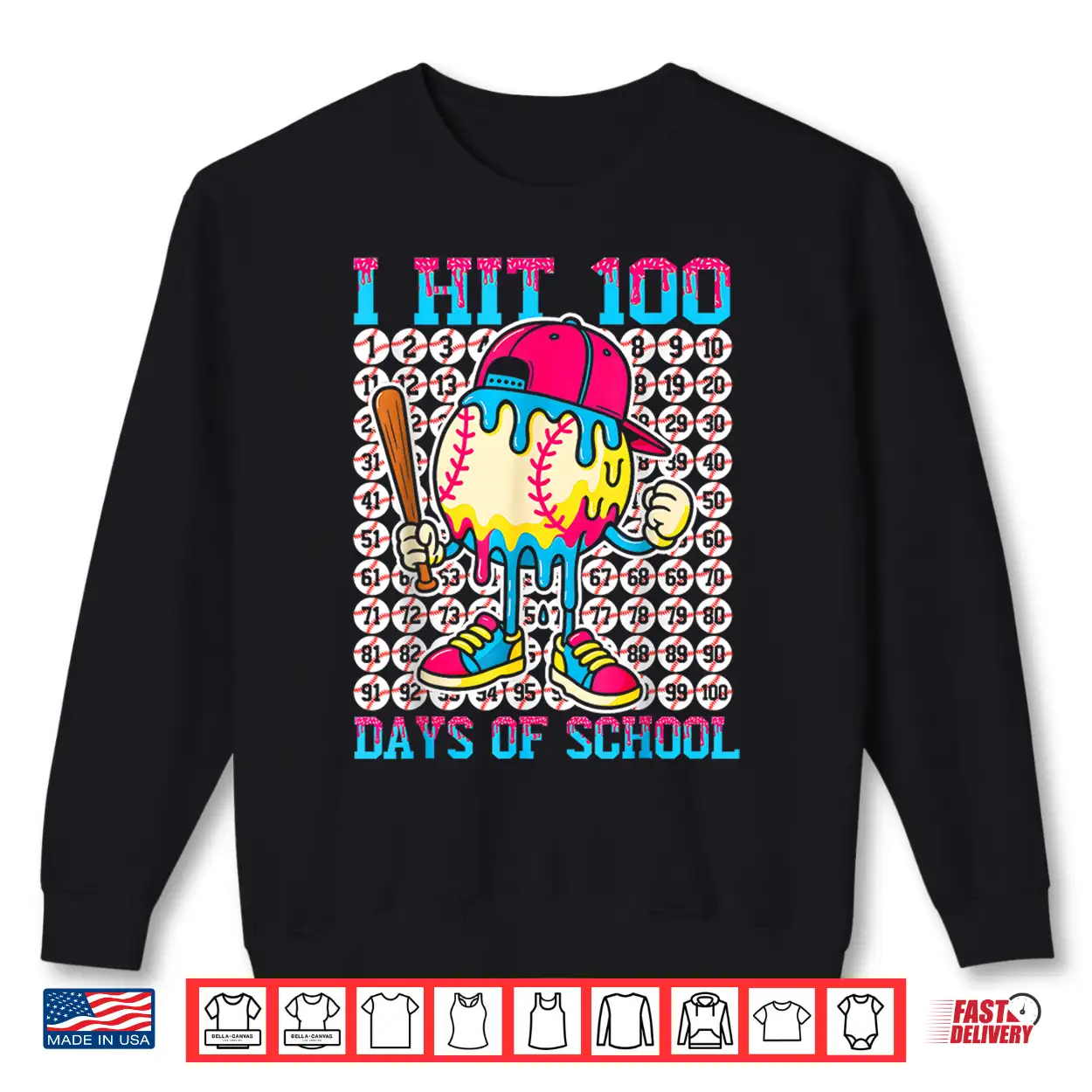 Baseball Ice Cream Drip 100 Days Of School Boys Girls 100Th Shirt