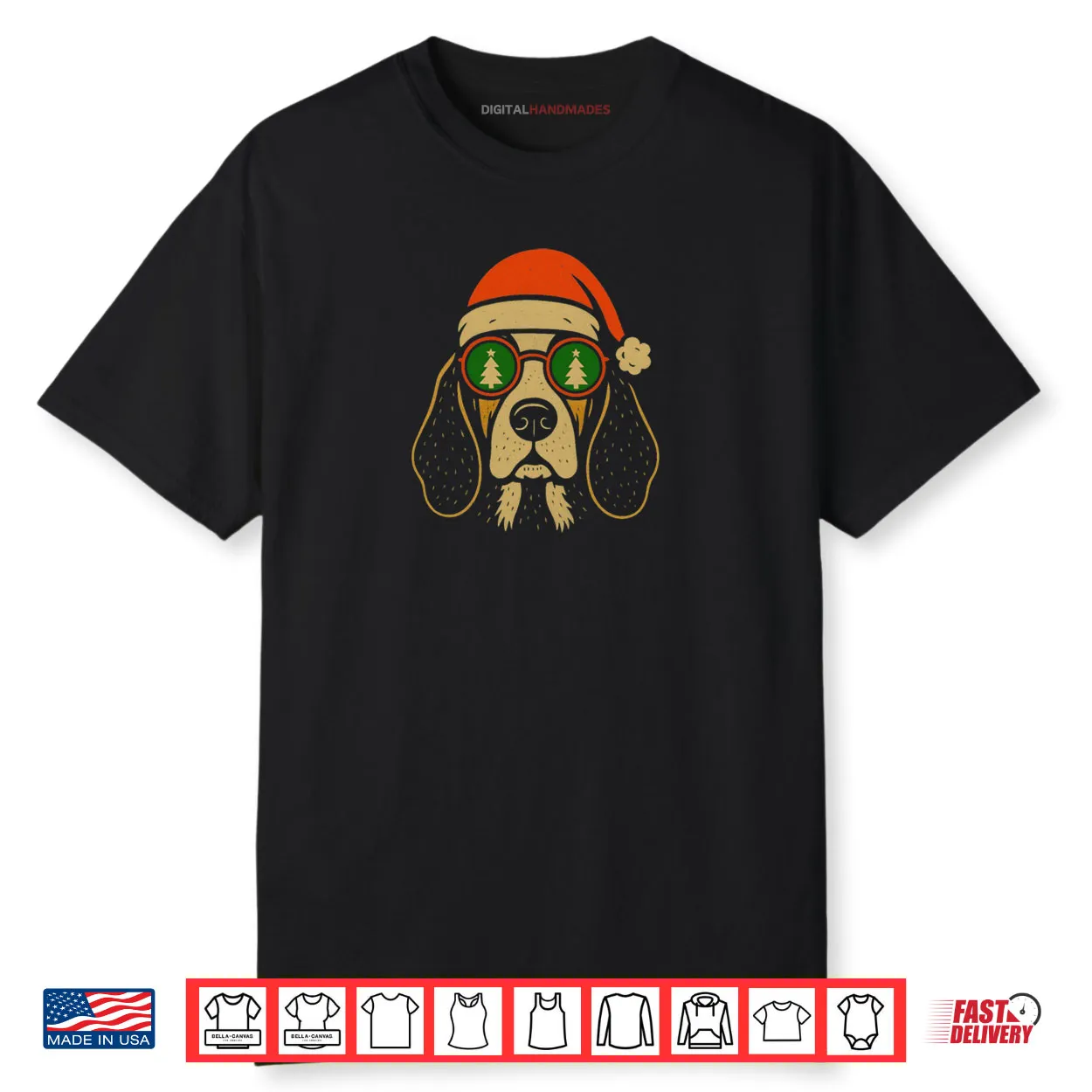 Basset Hound Christmas Dog Santa Hat Holiday Glasses Shirt