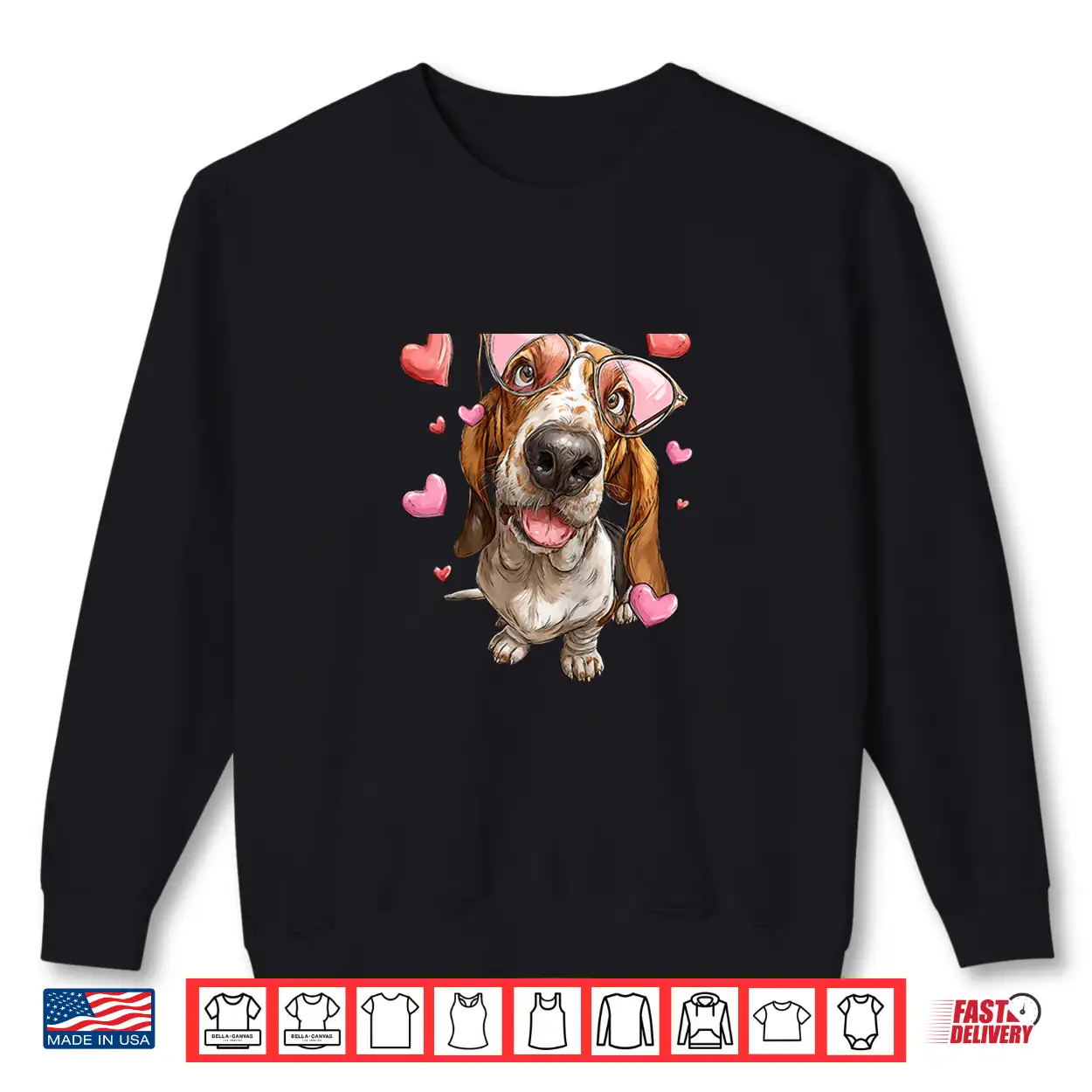 Basset Hound Dog Valentine’S Day Heart Sunglasses Shirt