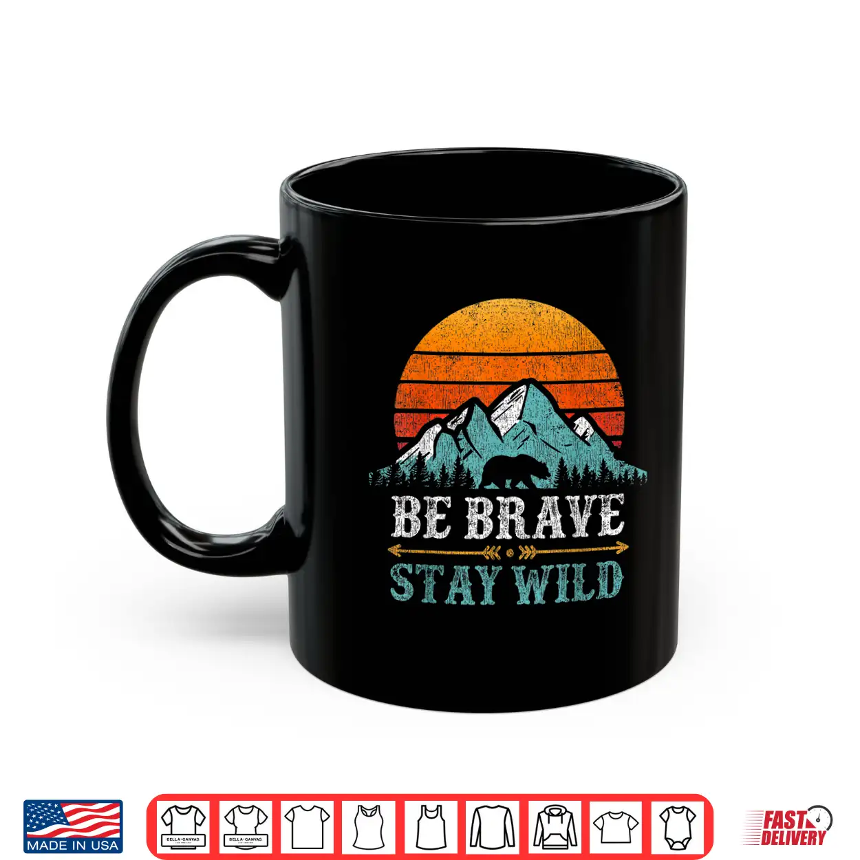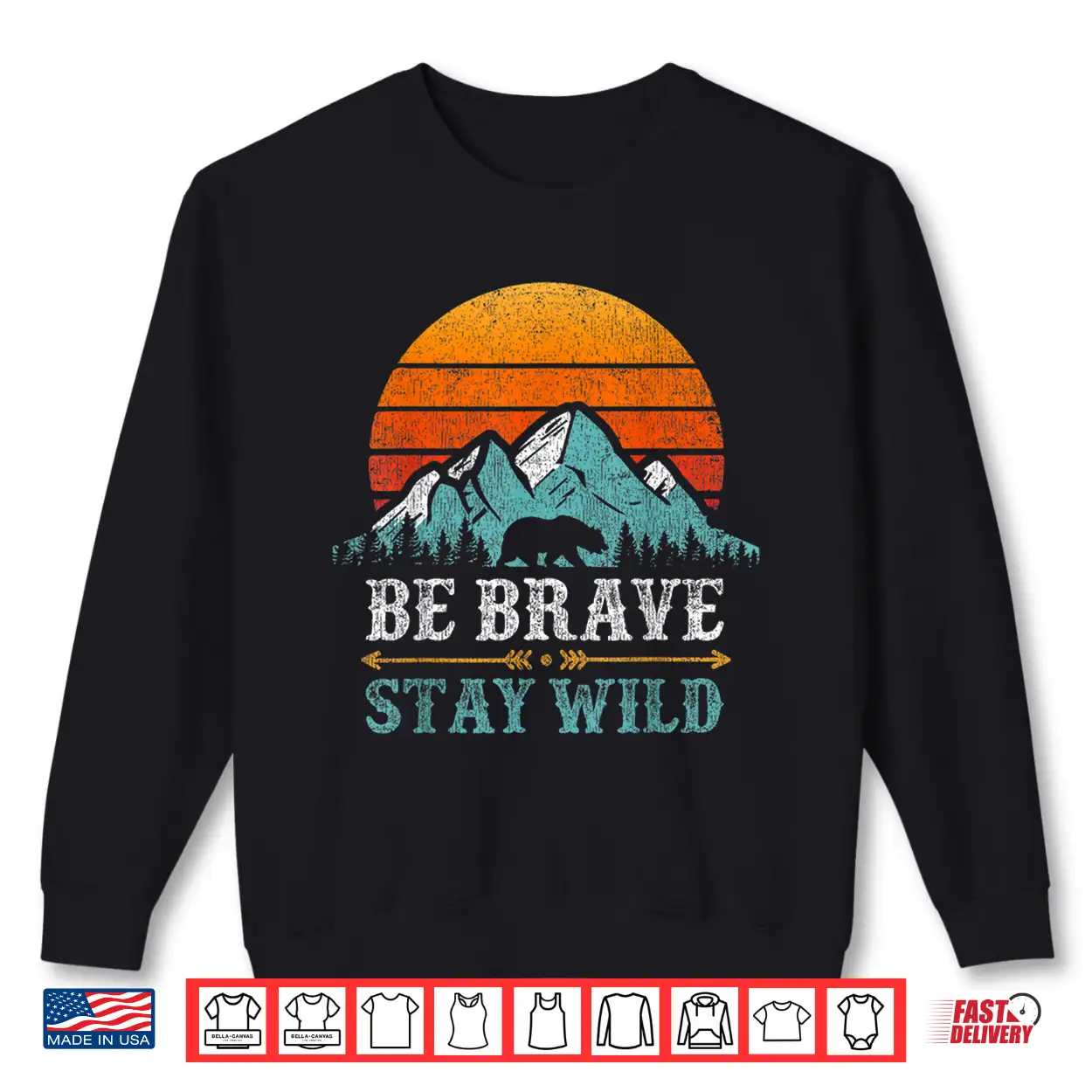 Be Brave Stay Wild Mountains Bear Hiking Retro Shirt
