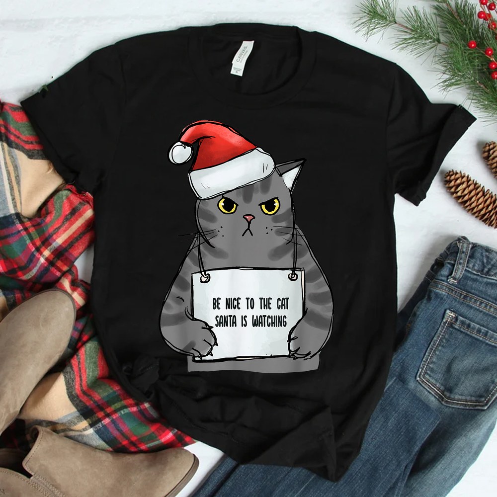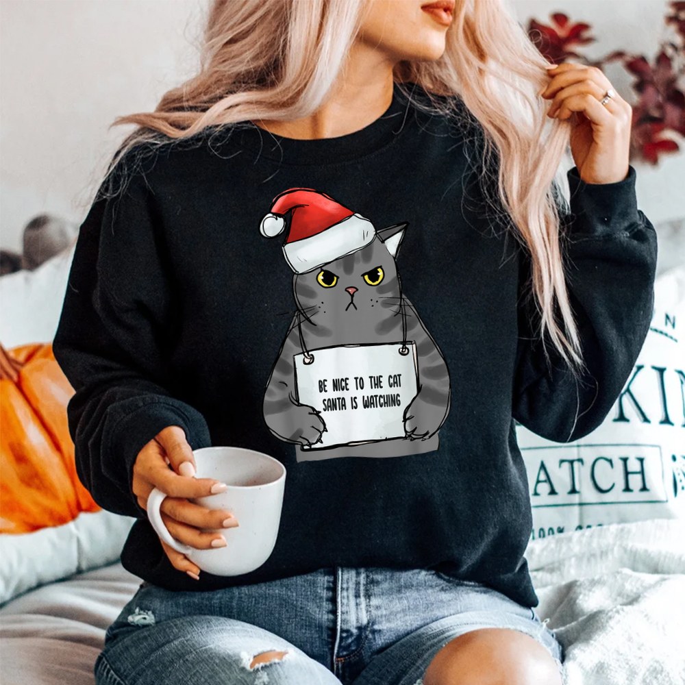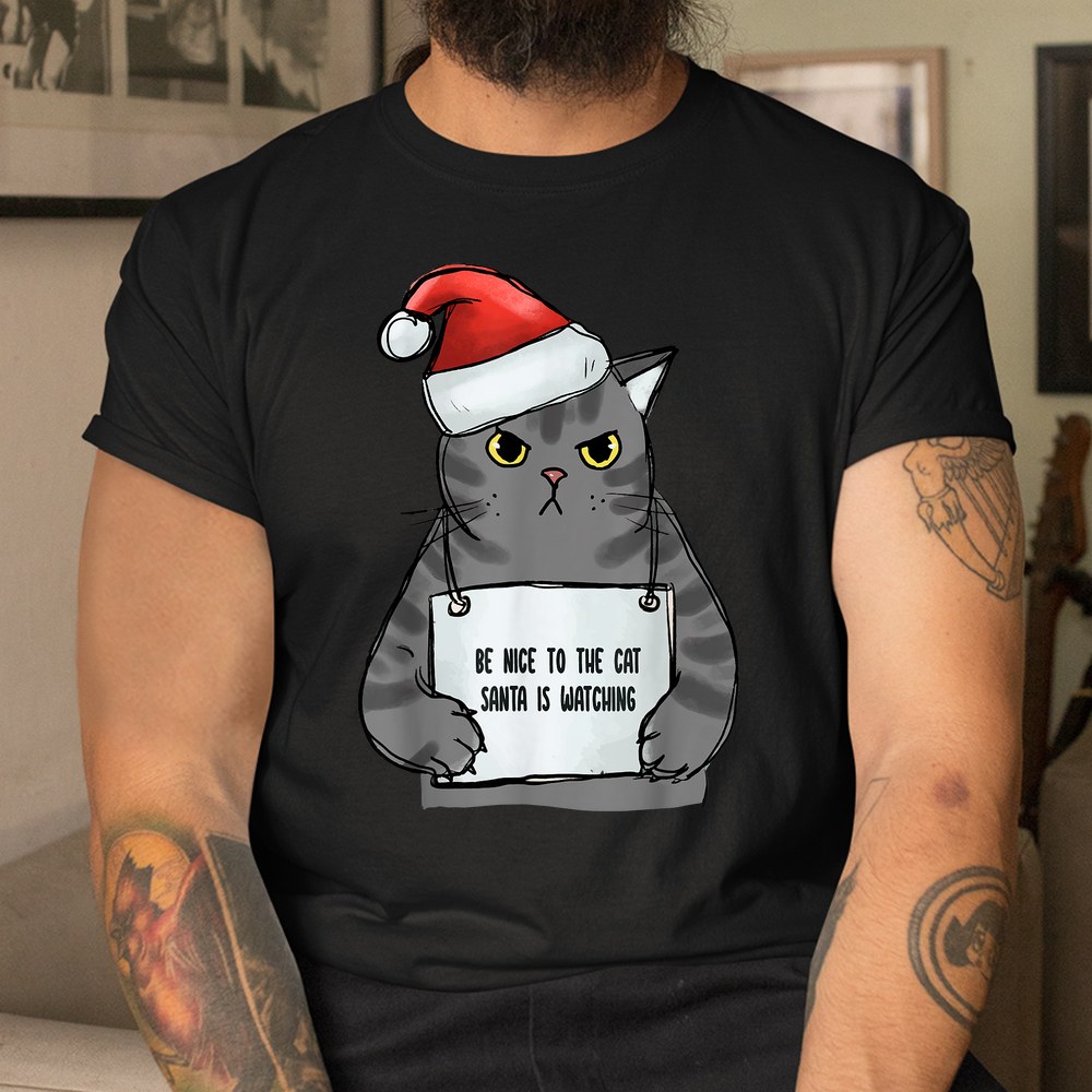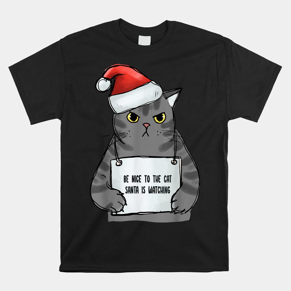 Be Nice To The Cat Santa Is Watching Christmas Shirt