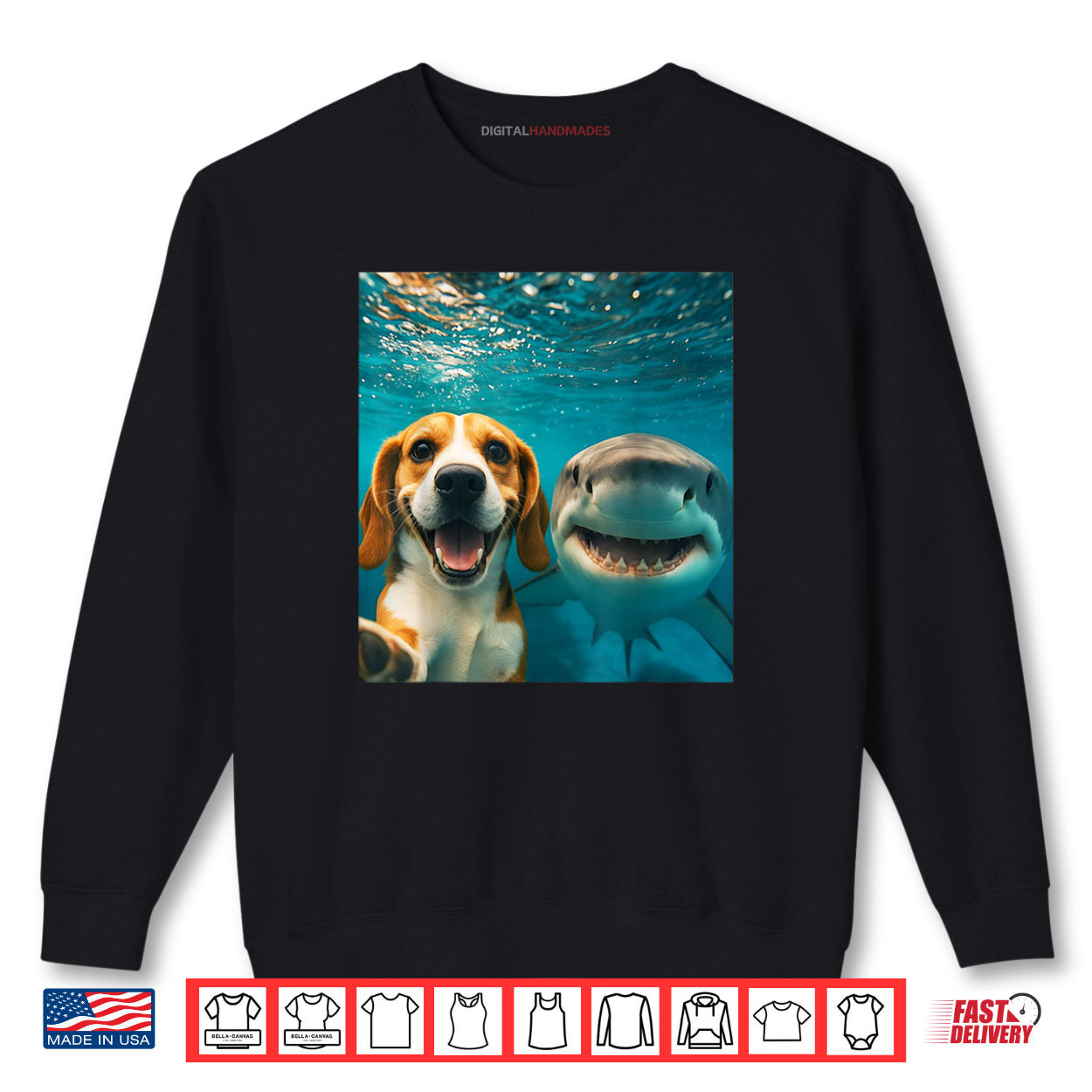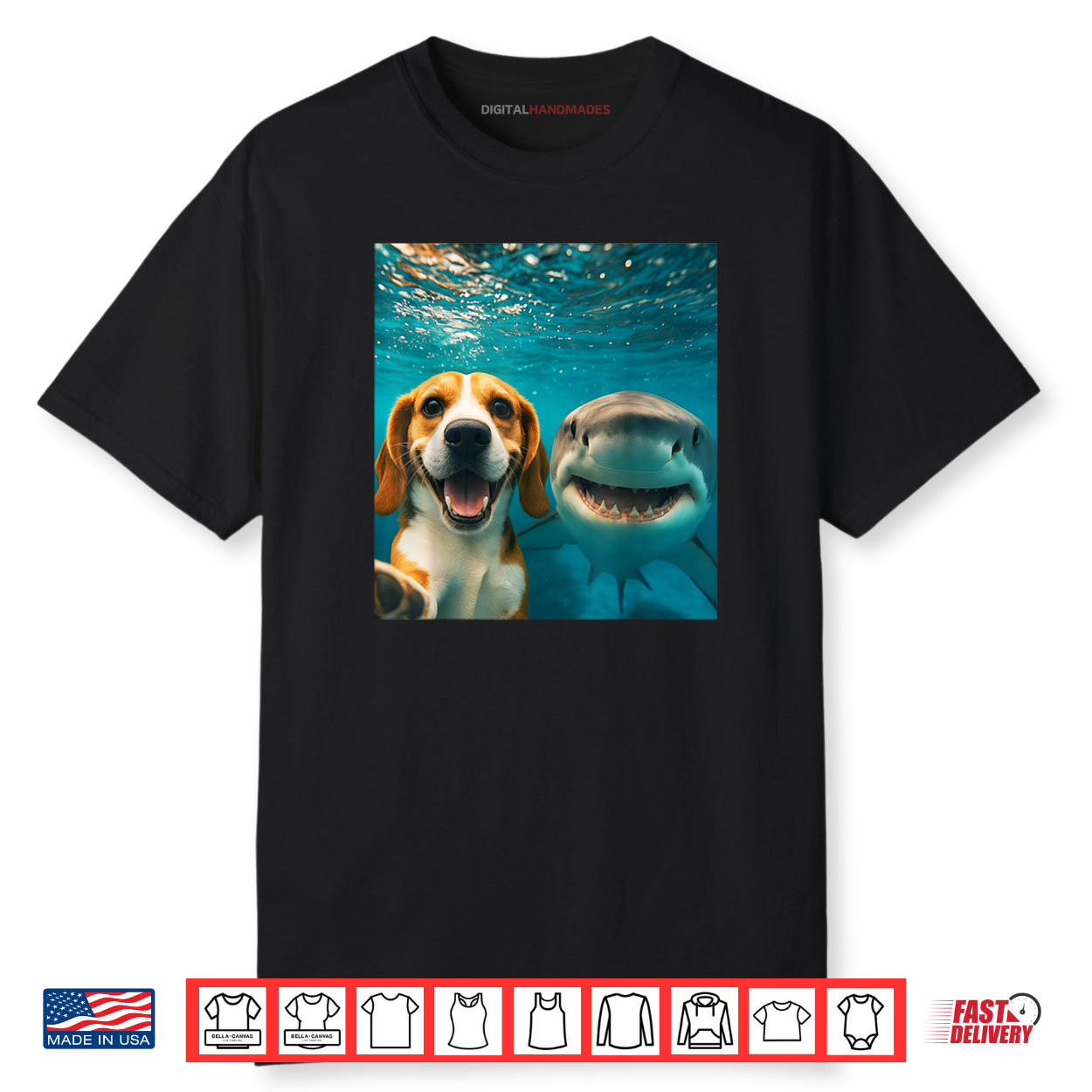 Beagle Dog Selfie with Shark Ocean Lovers Shirt, Beagle Dog Selfie Shirt, Shark Ocean Lovers Shirt, Funny Dog Shirt, Ocean Life Shirt, Beagle Lover Shirt