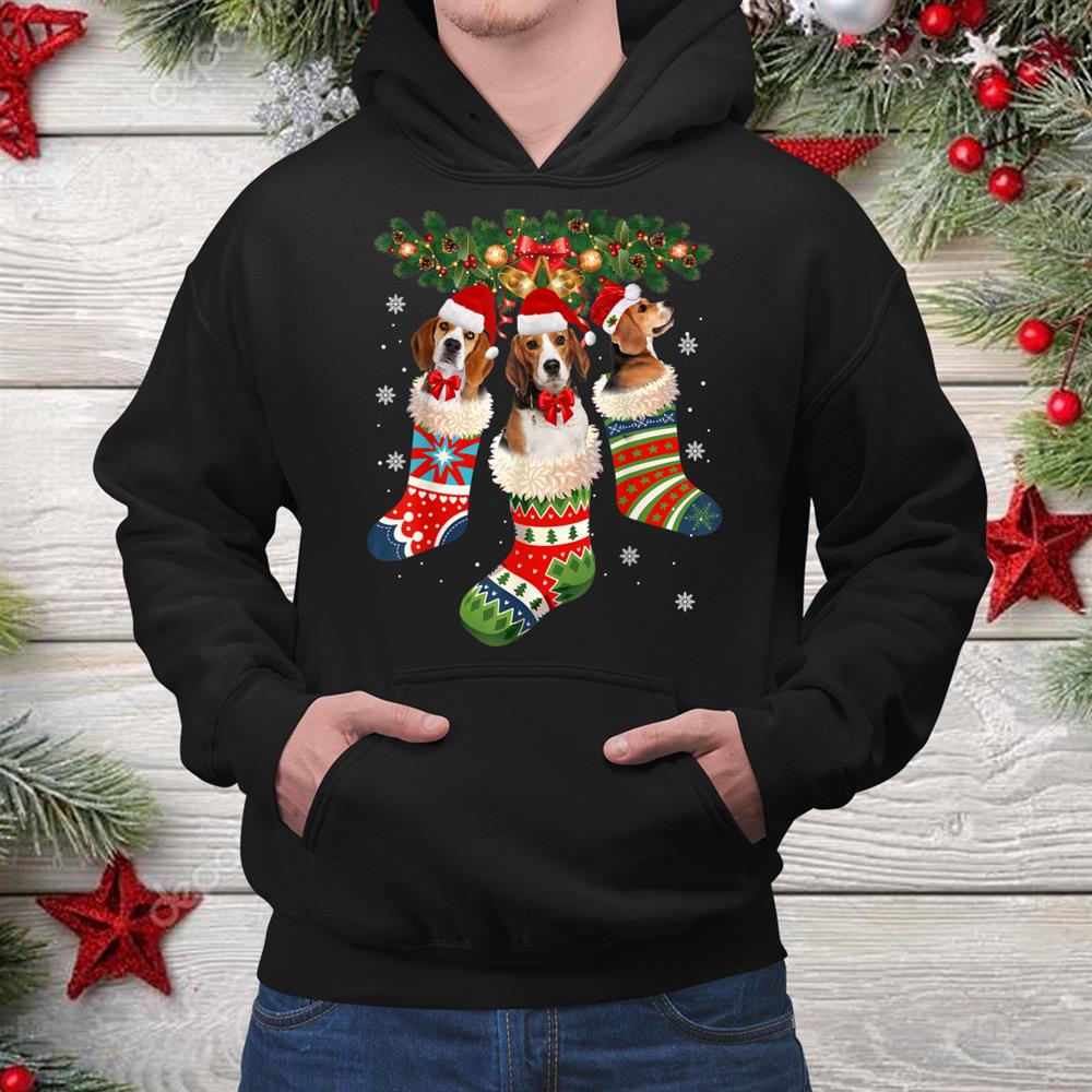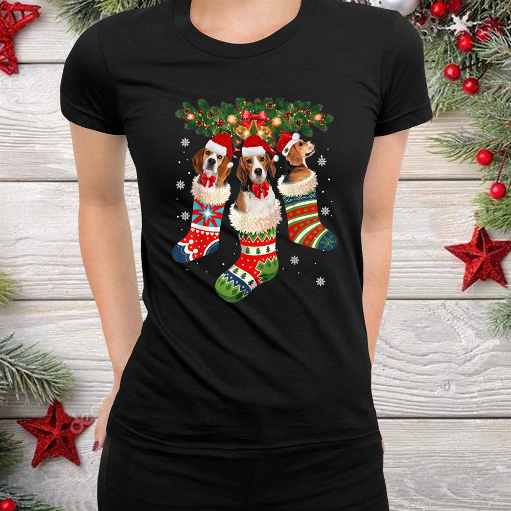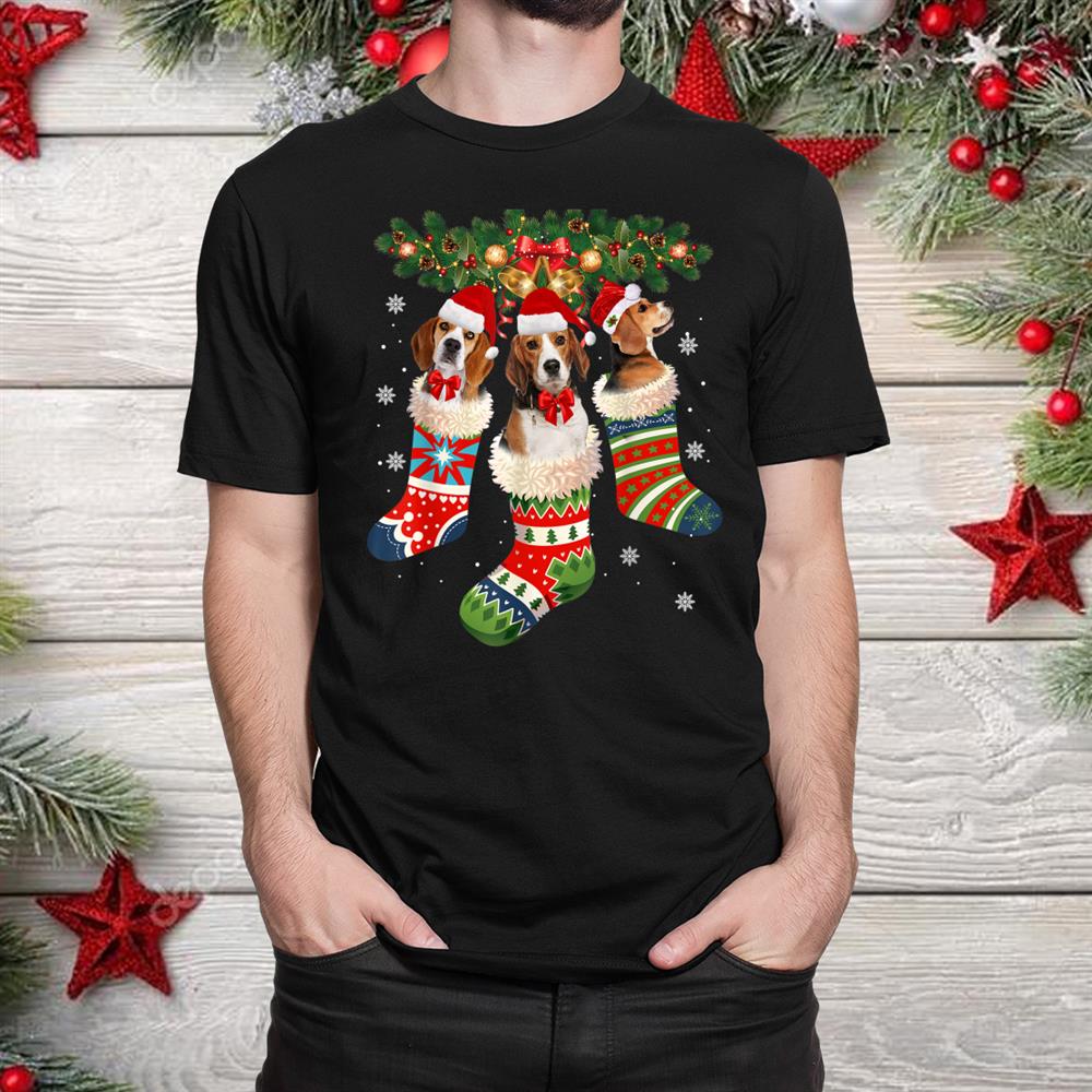 Beagle In Sock Dog Santa Hat Christmas Shirt, hoodie, sweatshirt, long sleeve and ladies T-shirt